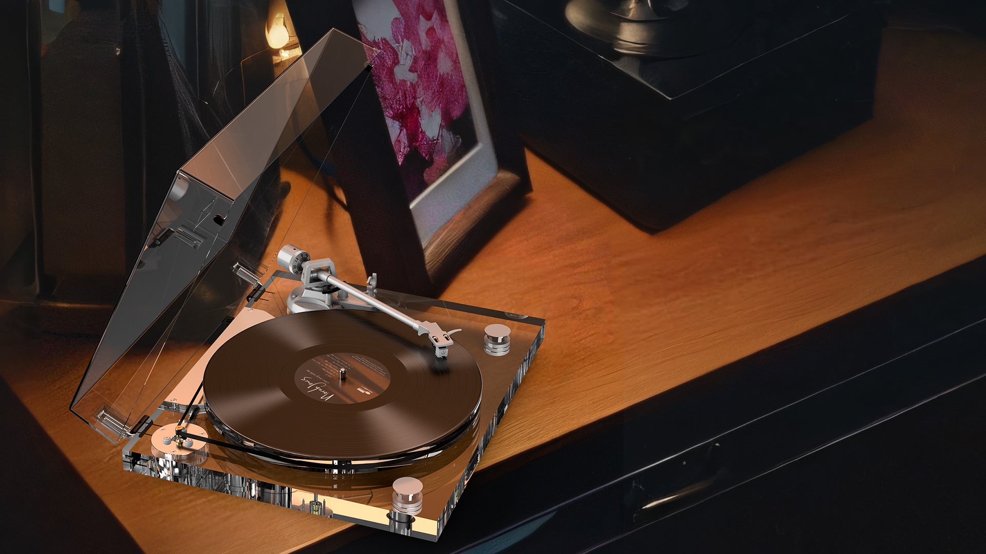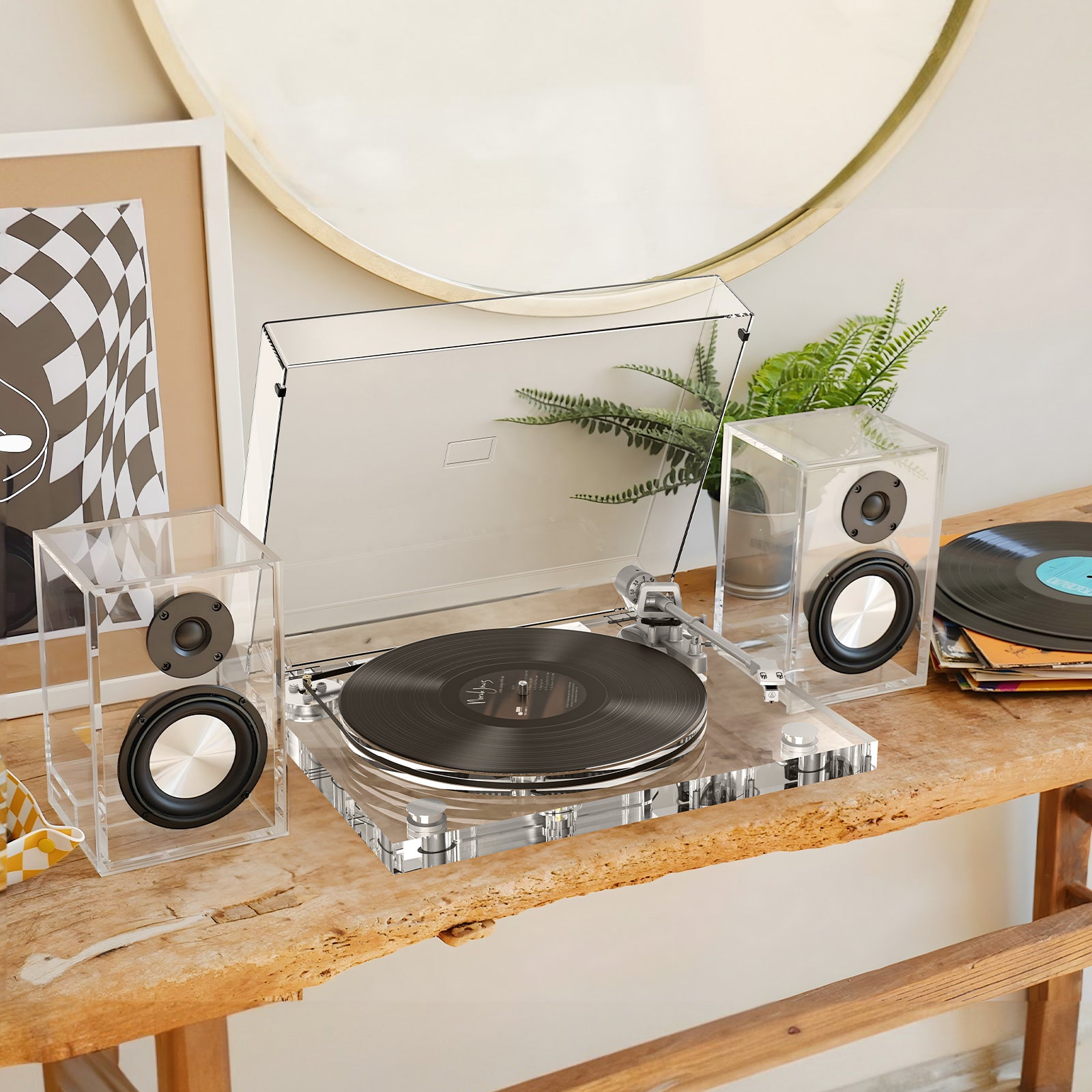 The fully transparent, high-fidelity Bluetooth turntable offers rich, vibrant sound, making it the perfect addition to any space that values exceptional audio quality.
