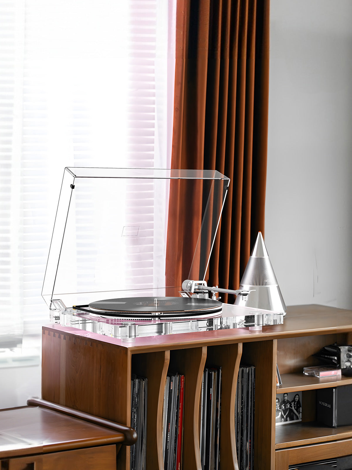 Fully transparent high-fidelity Bluetooth turntable with vibrant, rich sound — perfect for stylish, audiophile-quality listening.