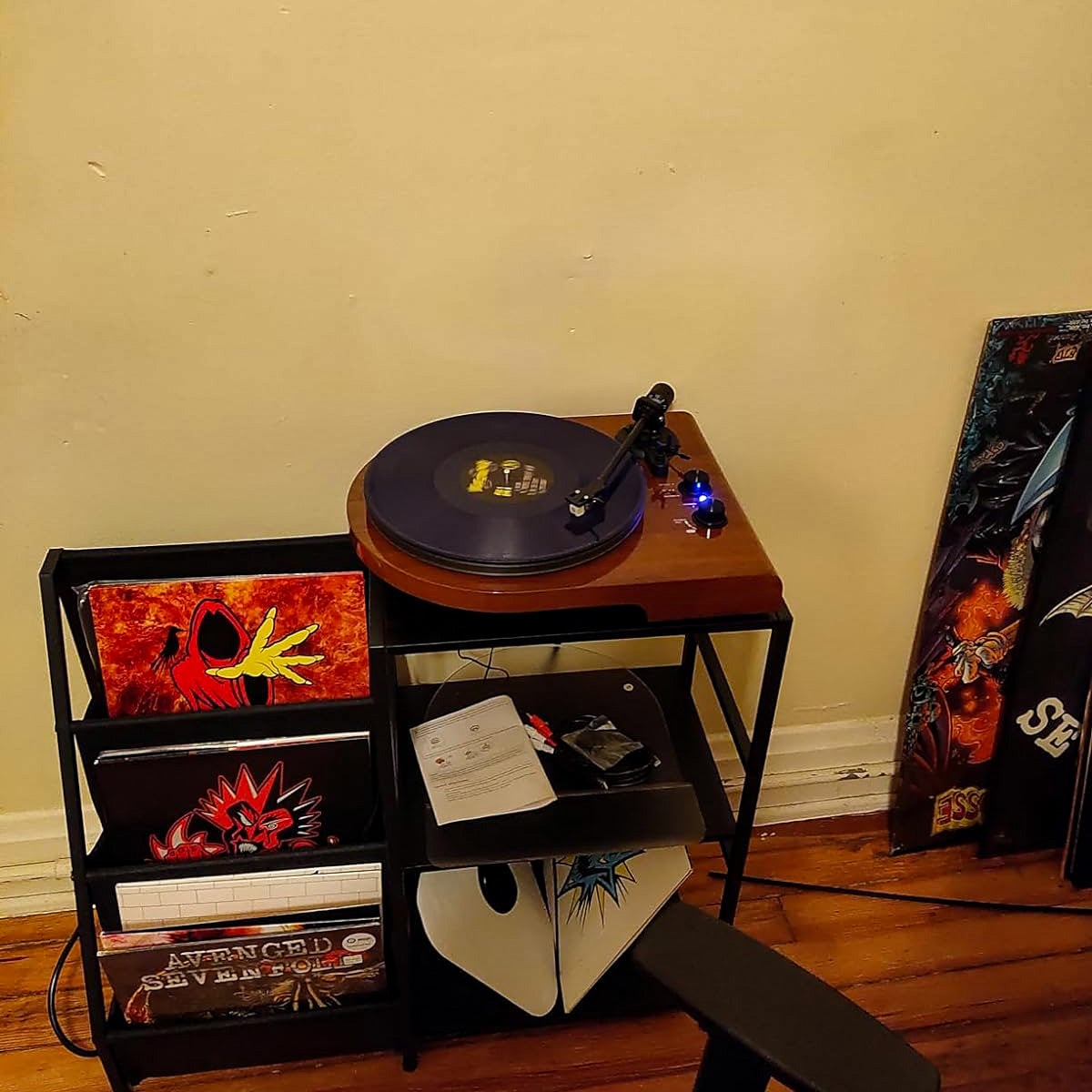 “The record player stand is both sleek and functional. It holds all my records securely and adds a vintage vibe to my space. Assembly was a breeze too!”