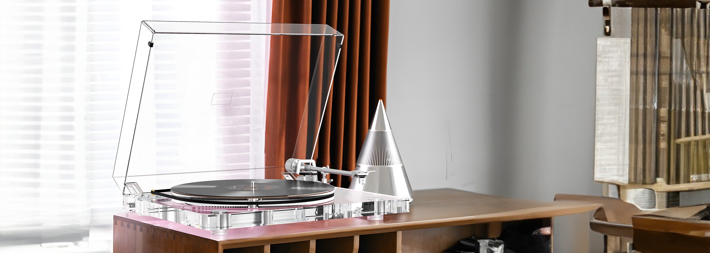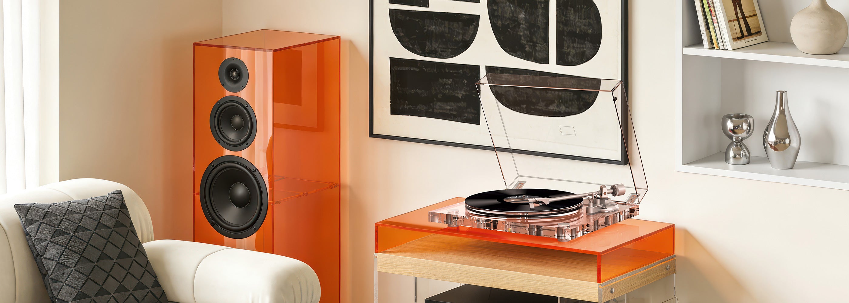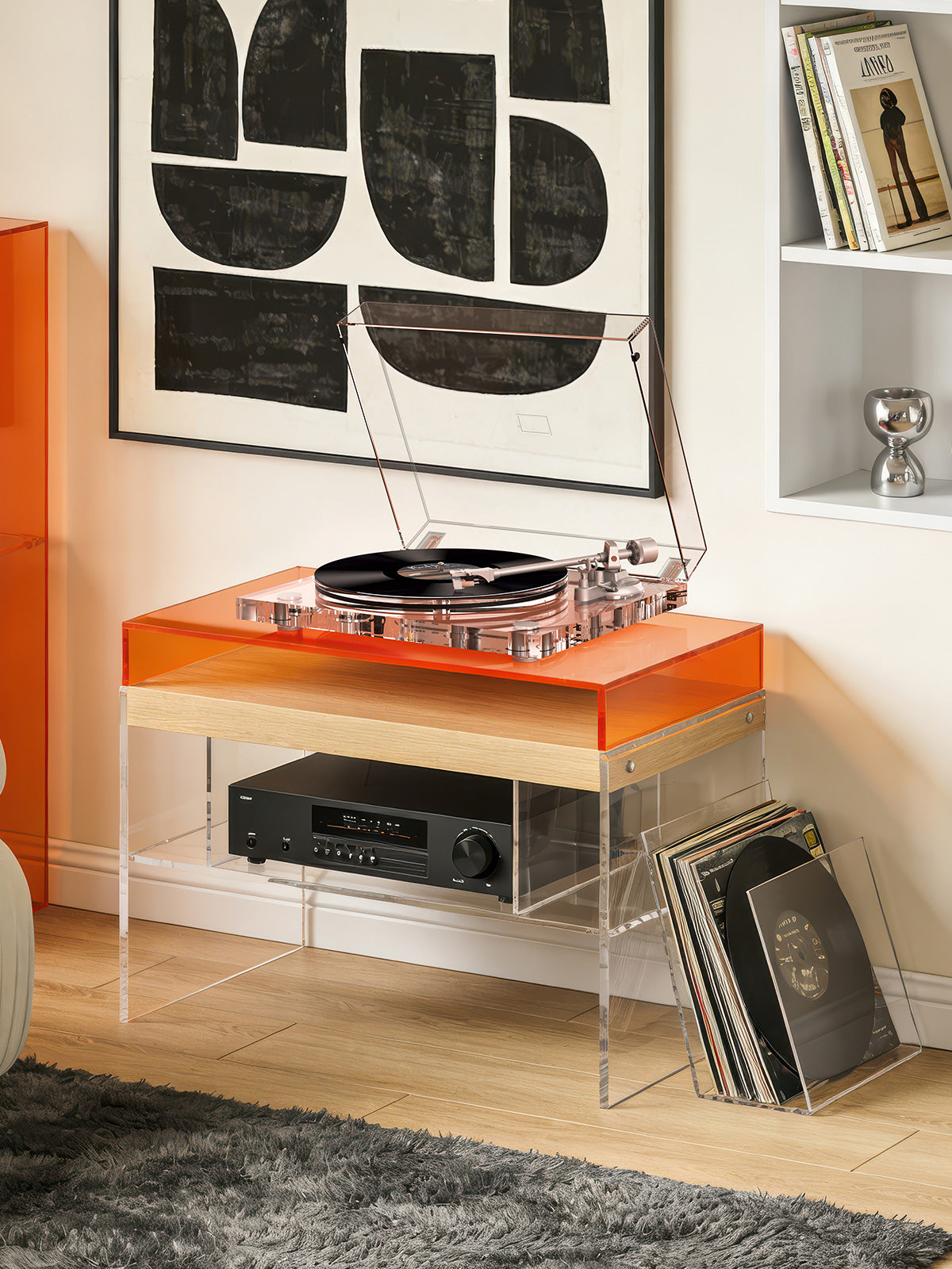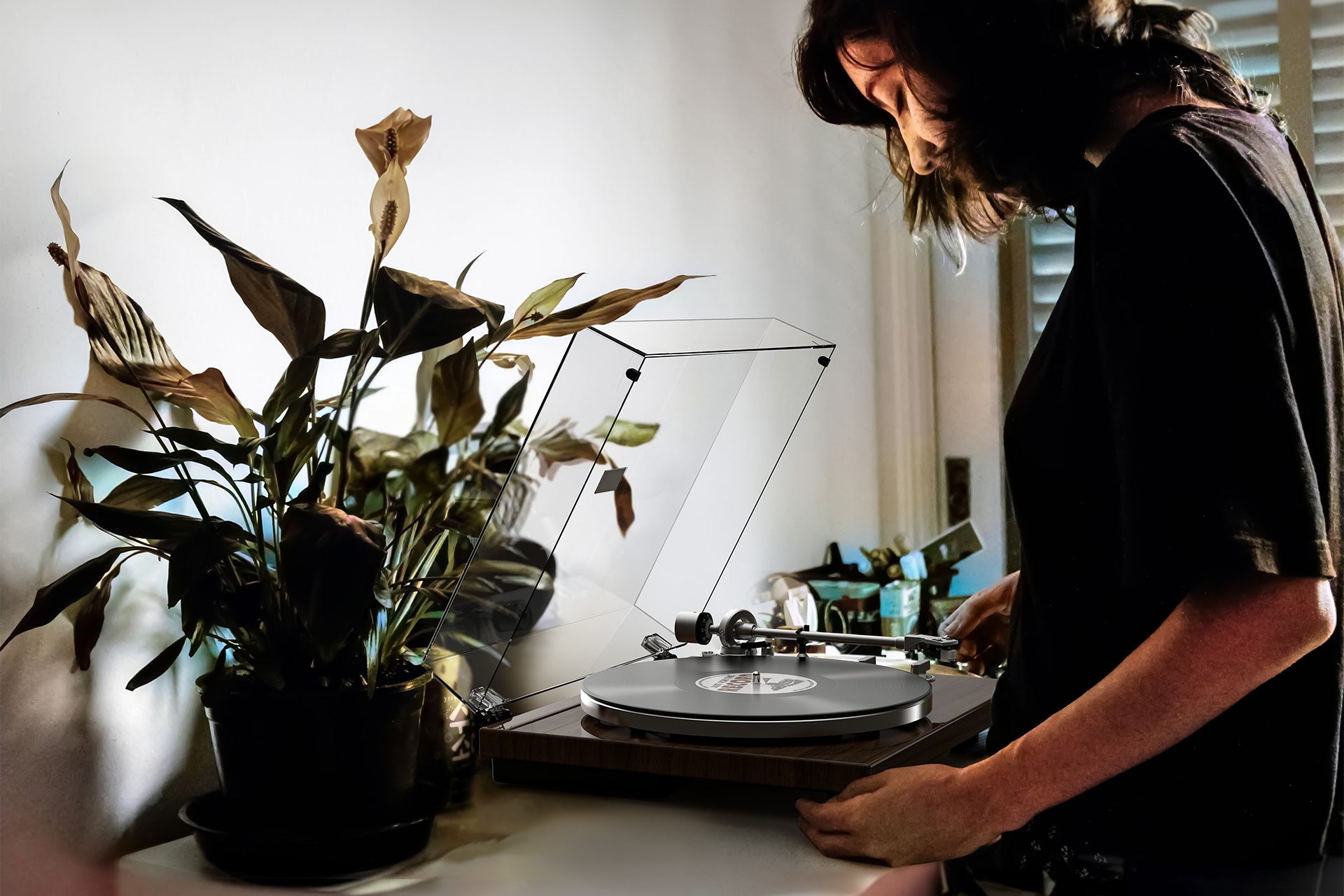 Fully transparent high-fidelity Bluetooth turntable with vibrant, rich sound — perfect for stylish, audiophile-quality listening.
