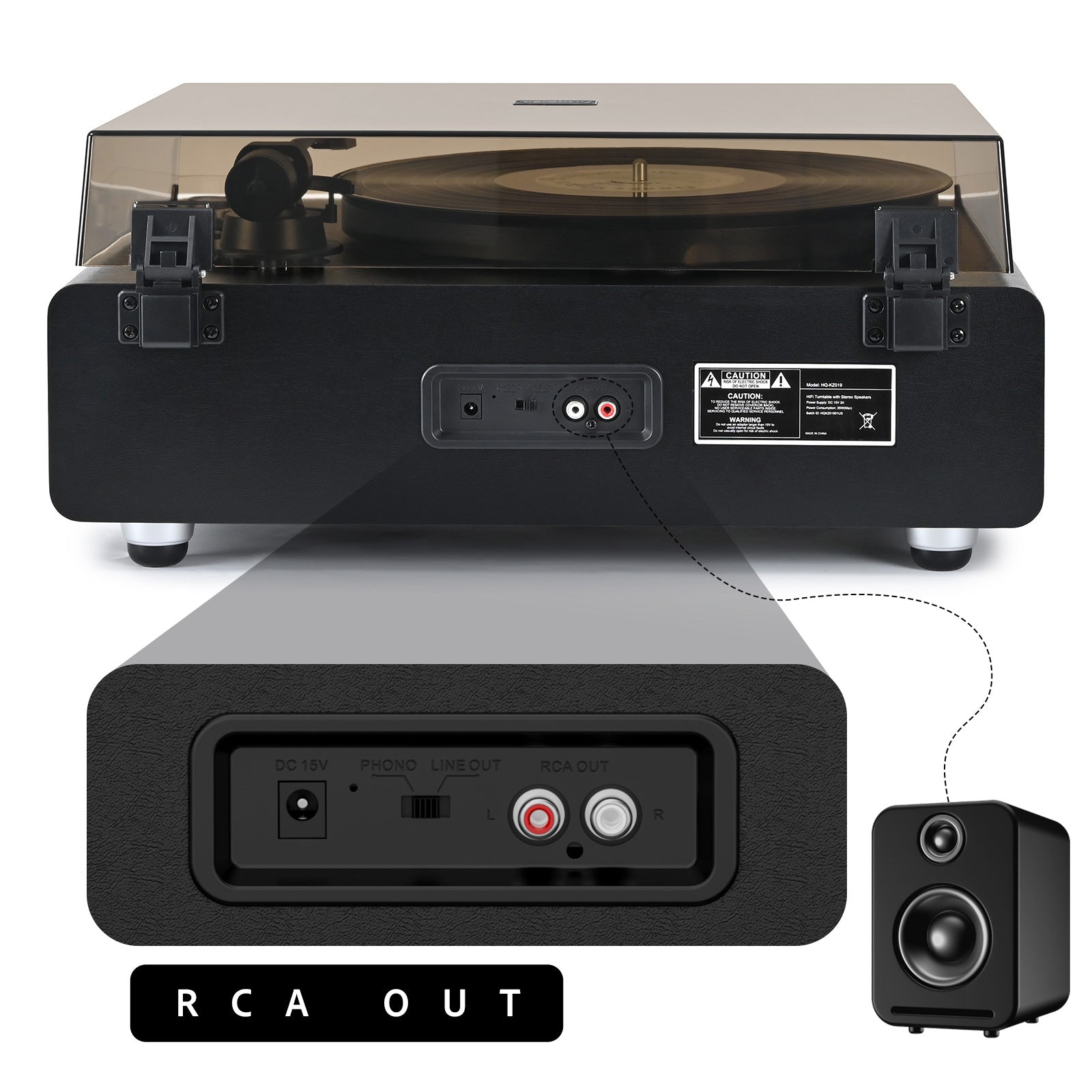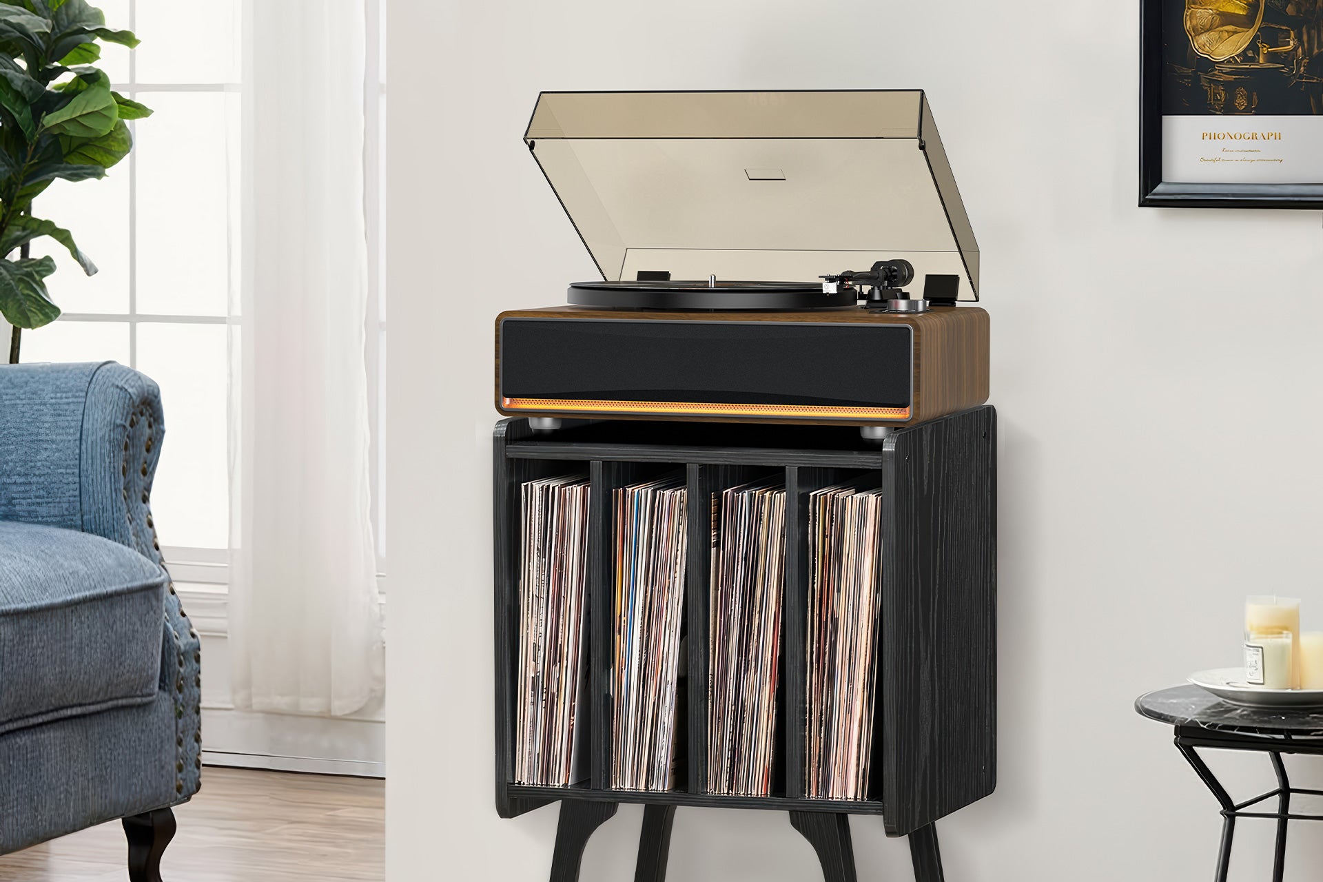 Traditional turntables require external speakers, amps, and cables. Our all-in-one turntables are designed to be simple—everything you need is already built in.
