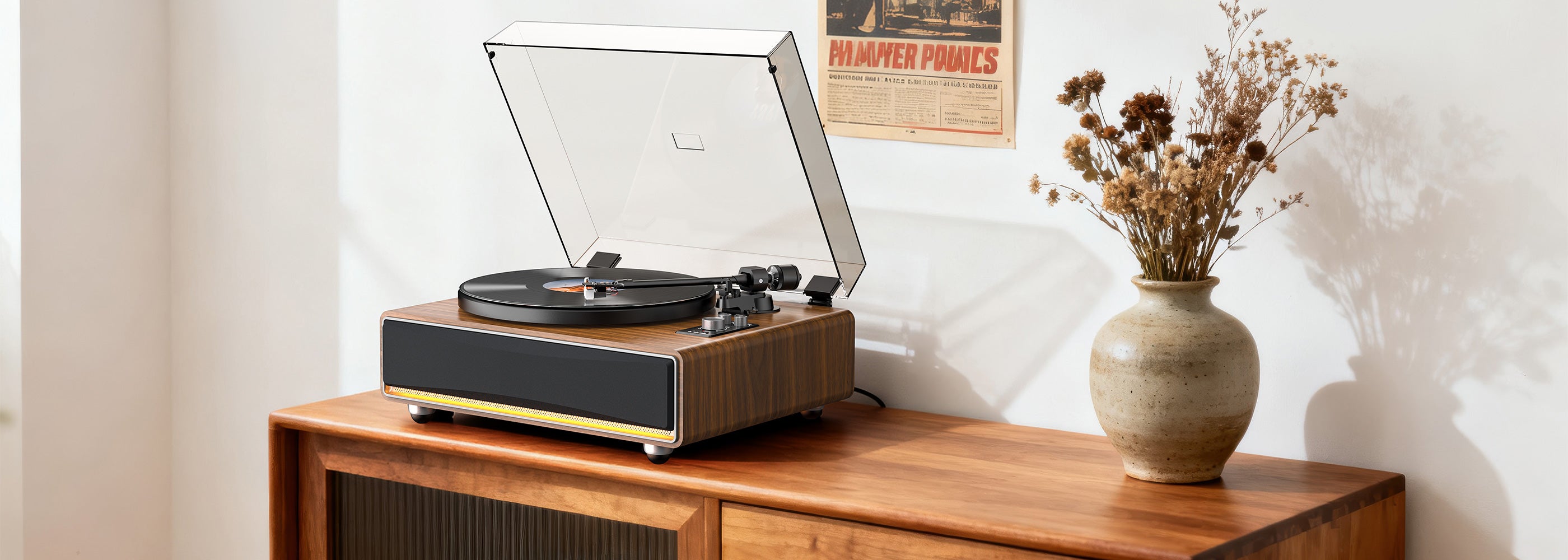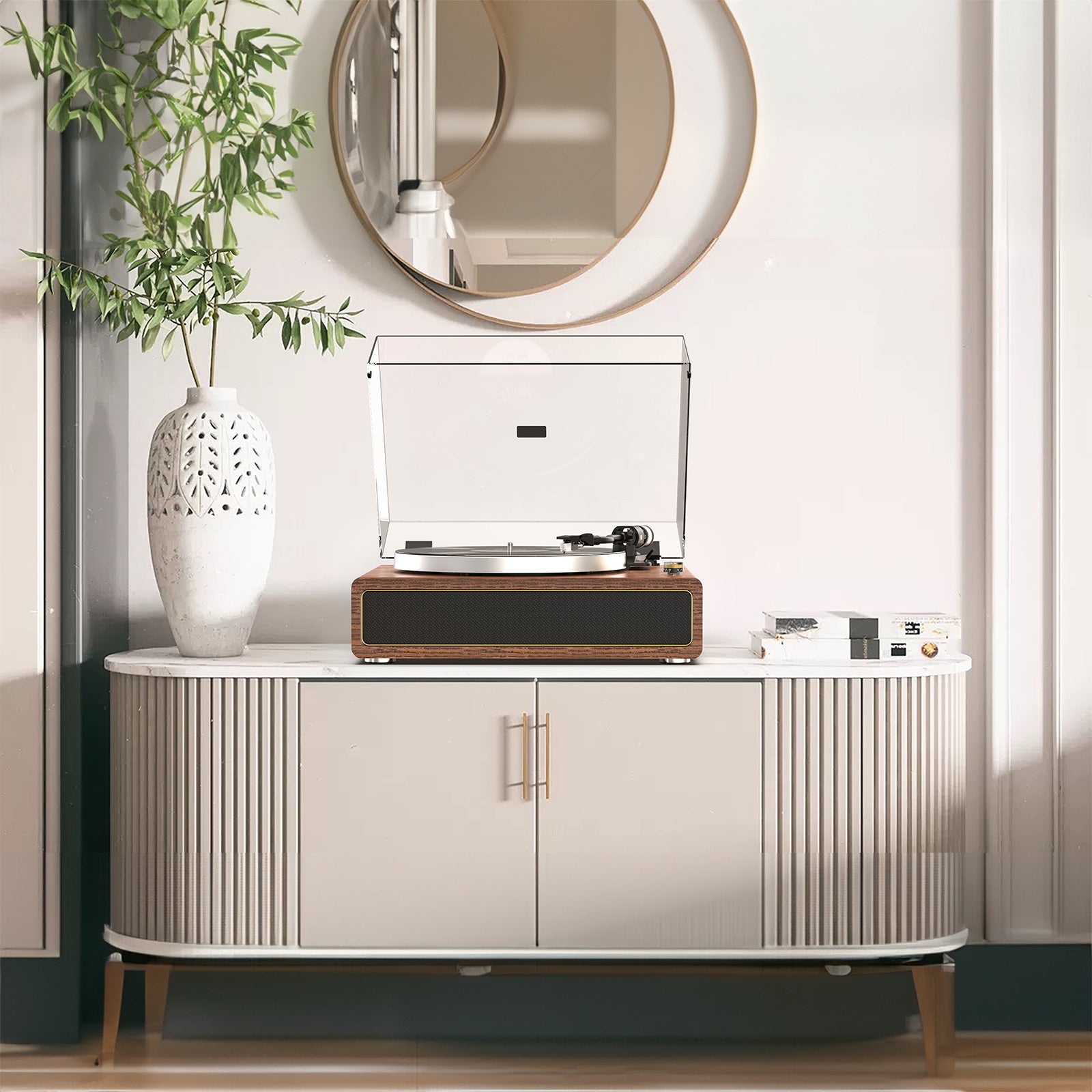 I live in a small apartment, so space matters. This all-in-one turntable fits perfectly and doesn’t look bulky at all. The built-in speakers are better than I expected, especially for jazz and classic rock. It feels thoughtfully designed, not cheap.