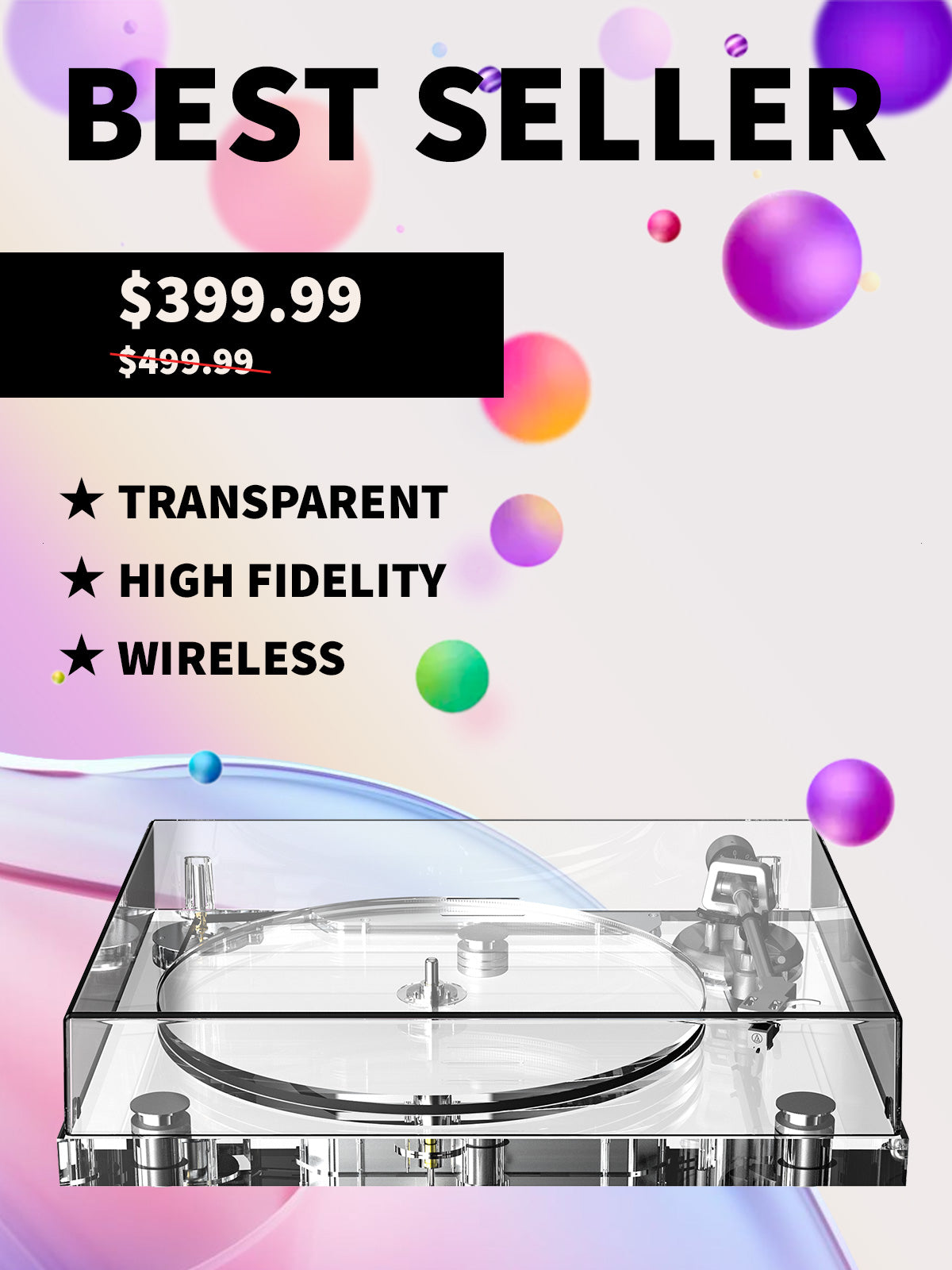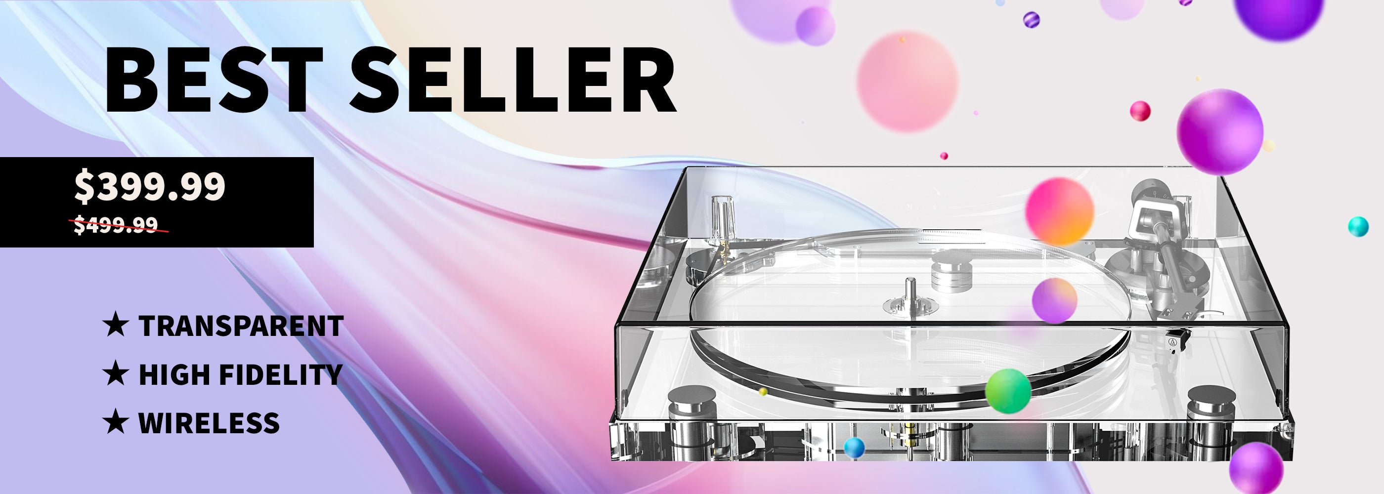 - The ICE1 fully transparent acrylic Bluetooth high-fidelity vinyl turntable has become the most popular product since its release, mainly because of its unique transparent design, high-fidelity sound quality, Bluetooth connection function and exquisite craftsmanship, and is deeply loved by users.