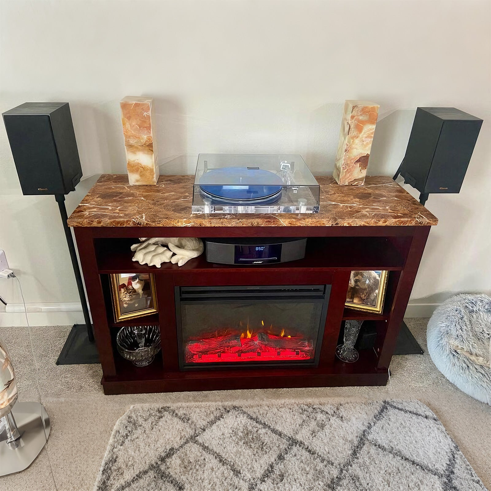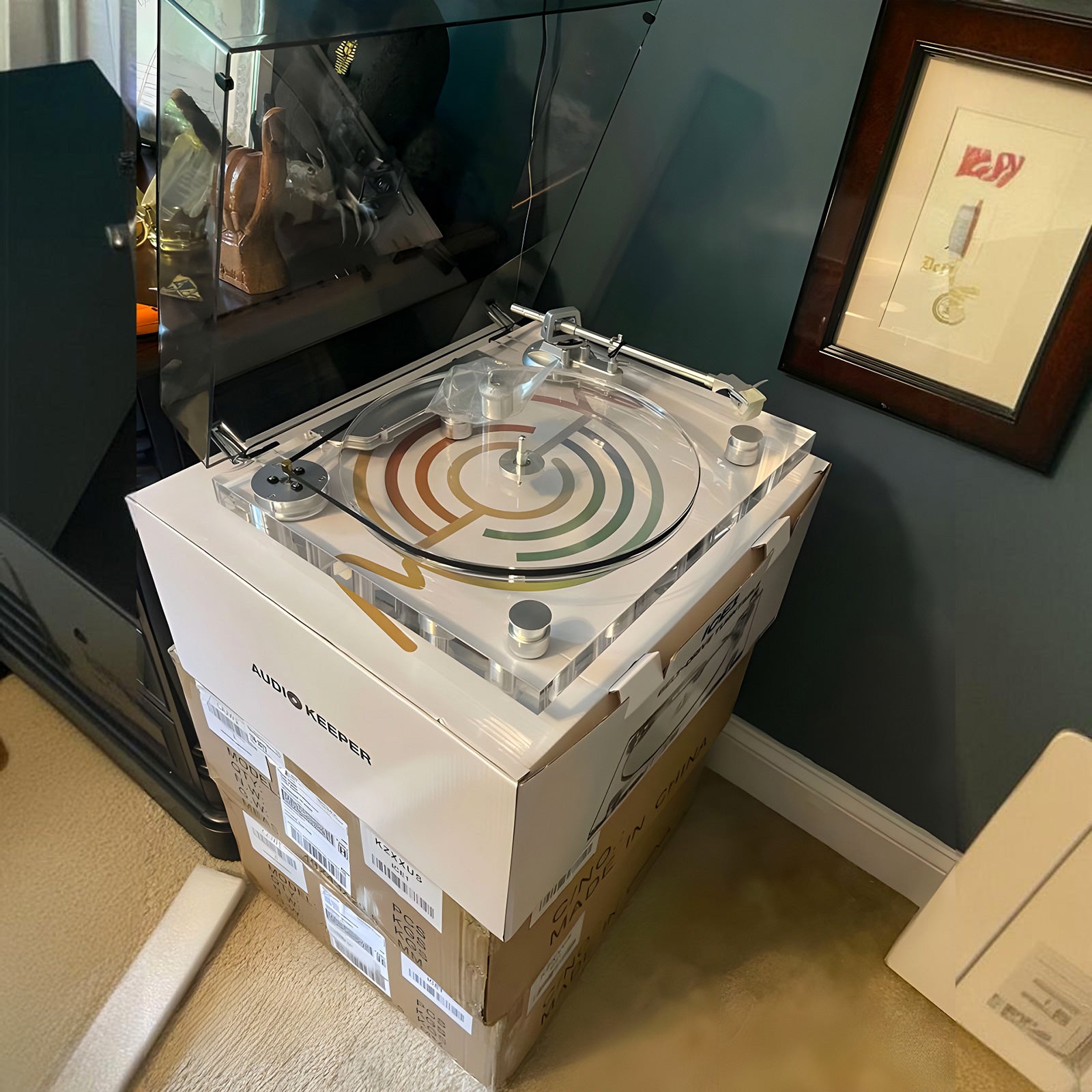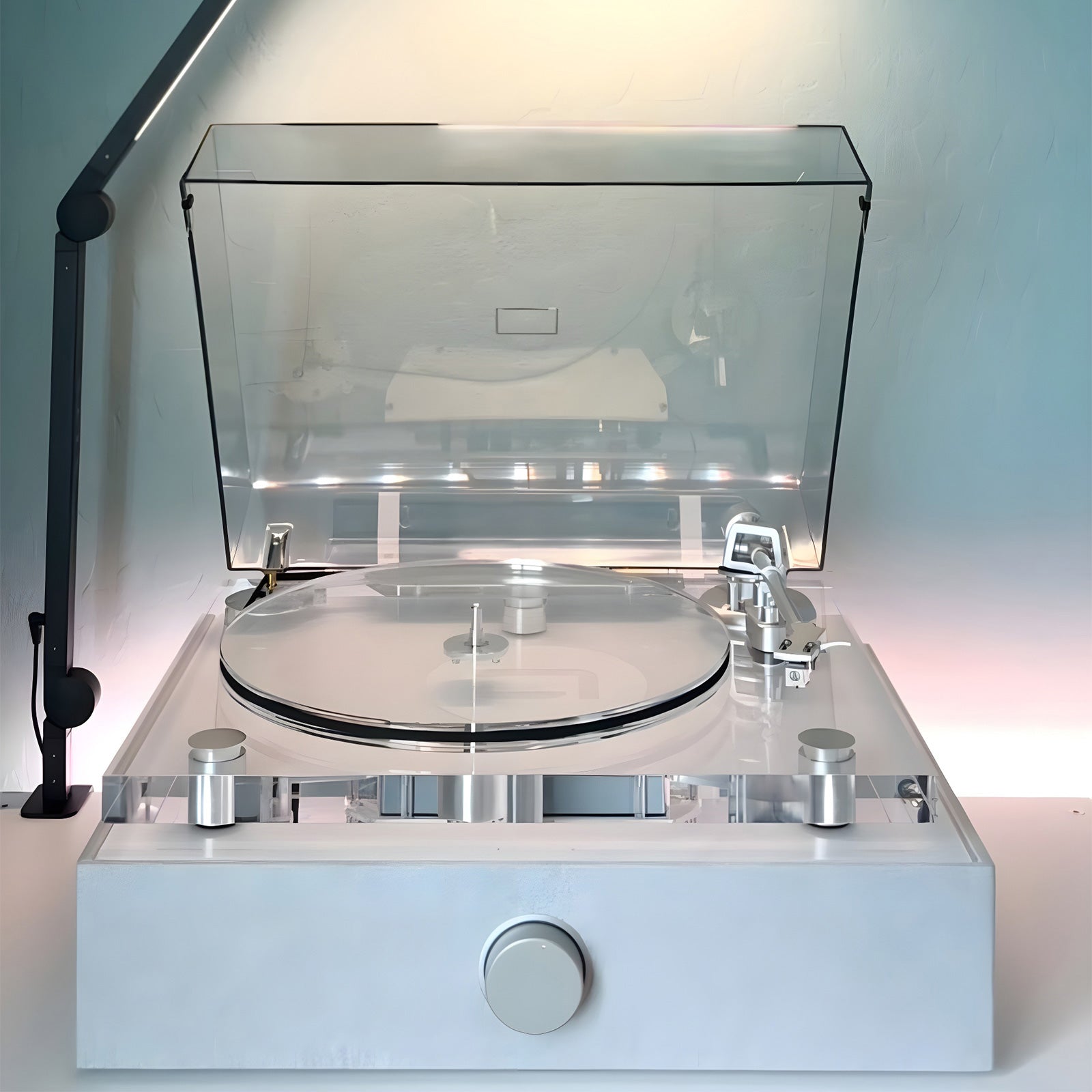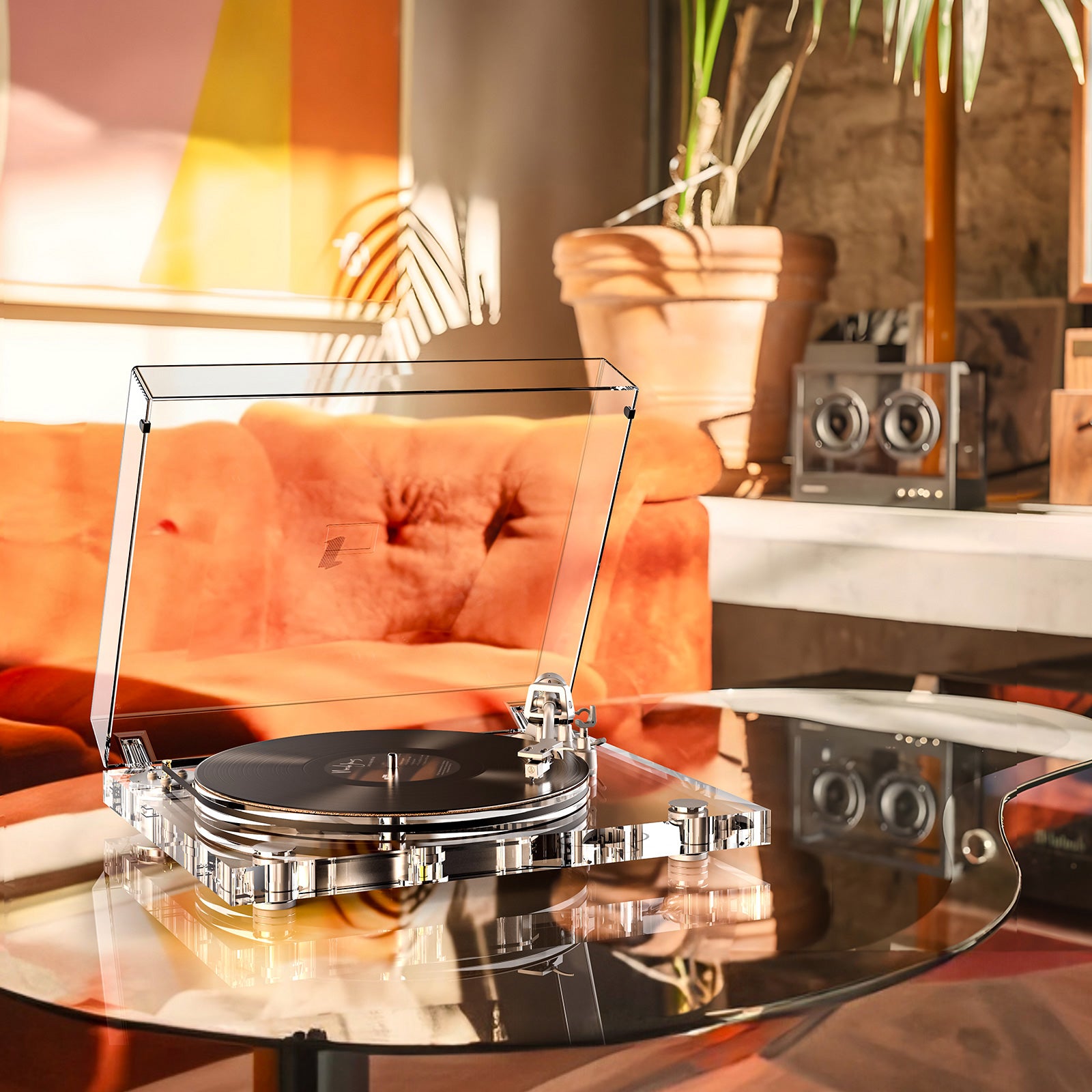 The transparent turntable is such a statement piece! Setup was simple, and the matched speakers sound amazing. Totally worth it.