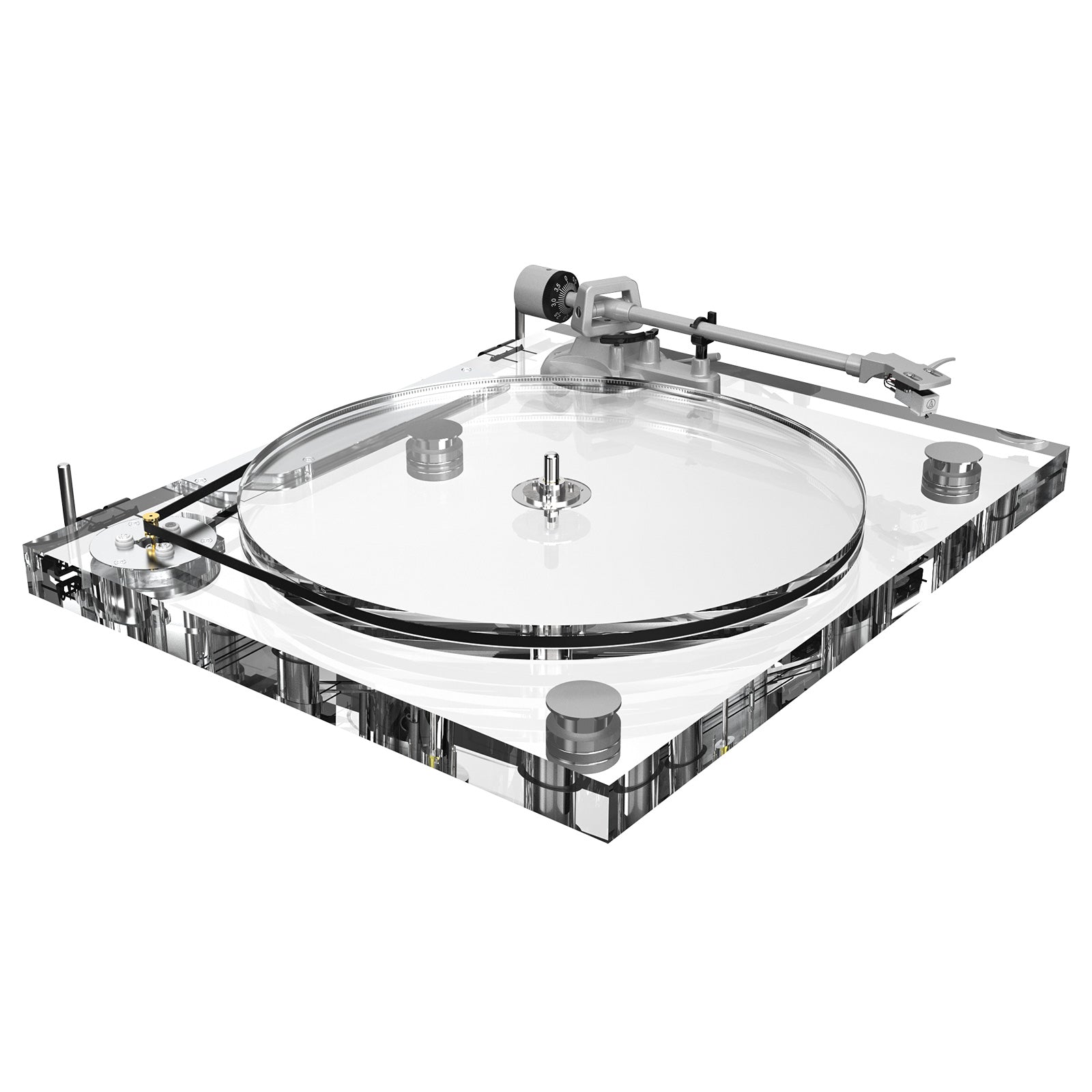A series of transparent acrylic turntables tailor-made for audio enthusiasts.