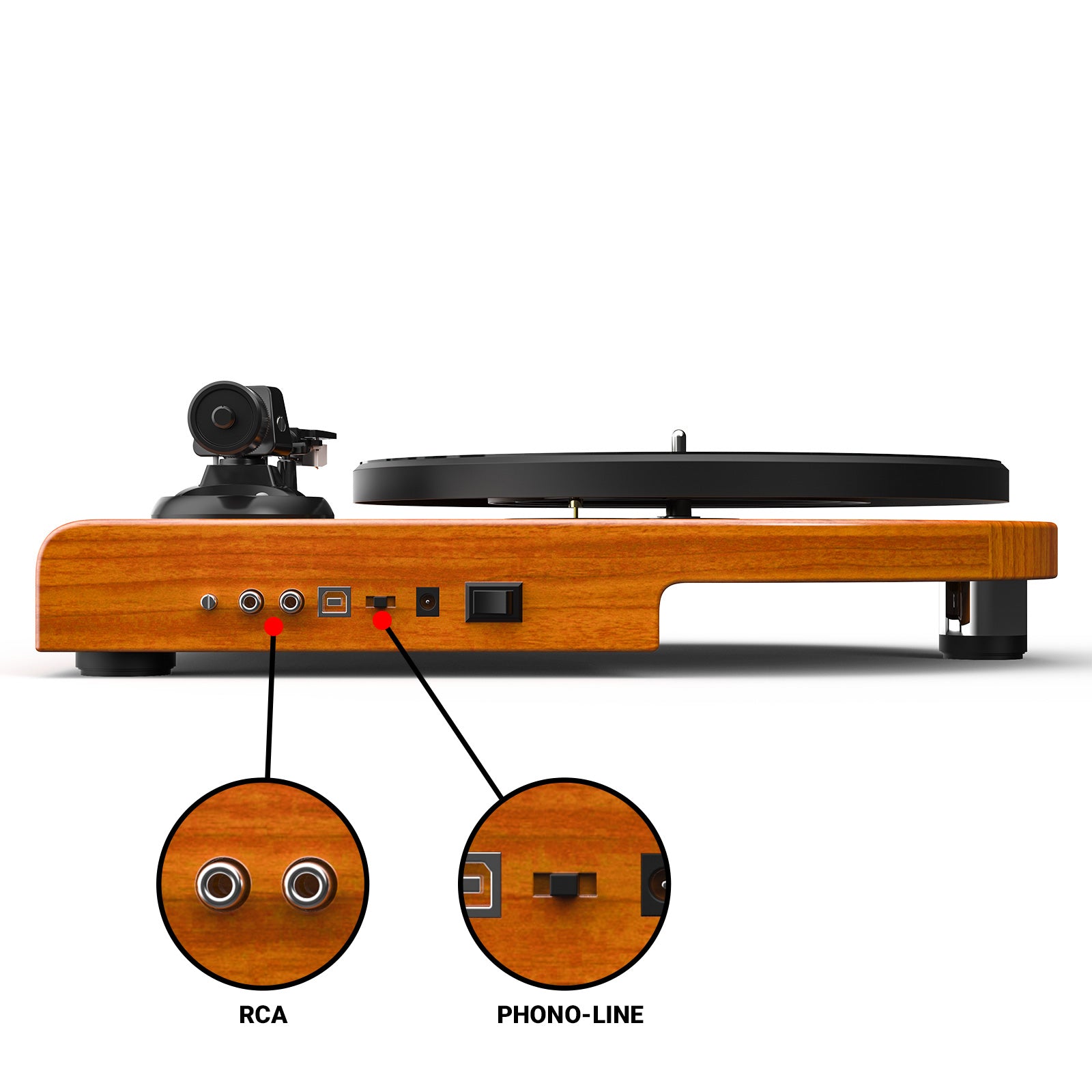 The precision-made solid and thick MDF plinth & carbon fiber full-size platter provide stable spinning performance.