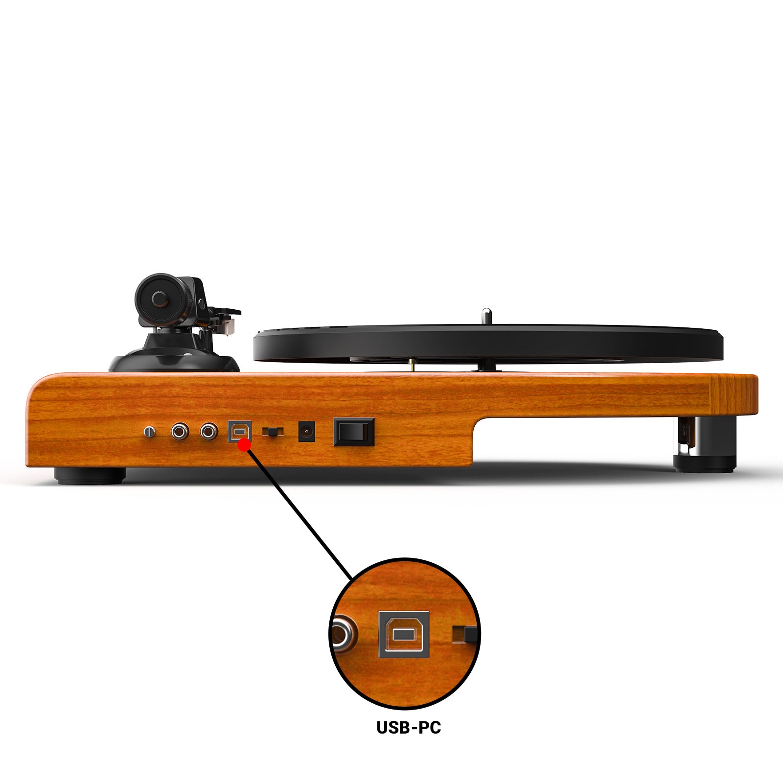 The turntable for vinyl records supports USB digital output, you can record the vinyl into MP3 format and transfer it to your computer directly via USB-PC jack and cable included in the package.