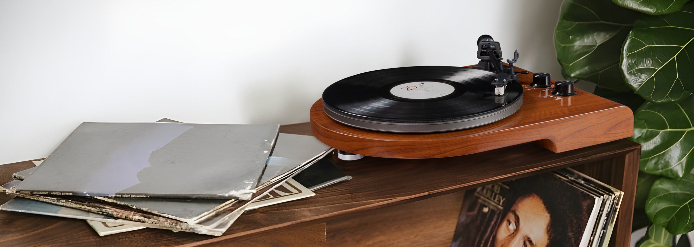Build in phono preamp, this turntable can provide high fidelity stereo sound. It includes both Phono and Line outputs, allows vinyl playing with or without a Phono equalizer.