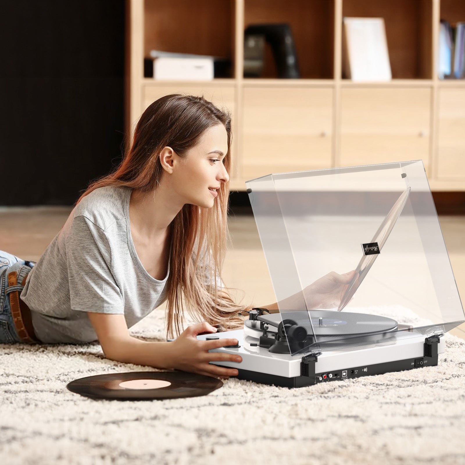 We answered: Our turntables are designed with great emphasis on user-friendliness, and almost all of our products are compatible with most audio systems on the market. Whether via Bluetooth or wired connection, you can quickly connect the device to your existing audio system without complicated configuration processes. Many customers have said that the seamless connection between the audio system and the turntable makes their music experience easier and smoother.