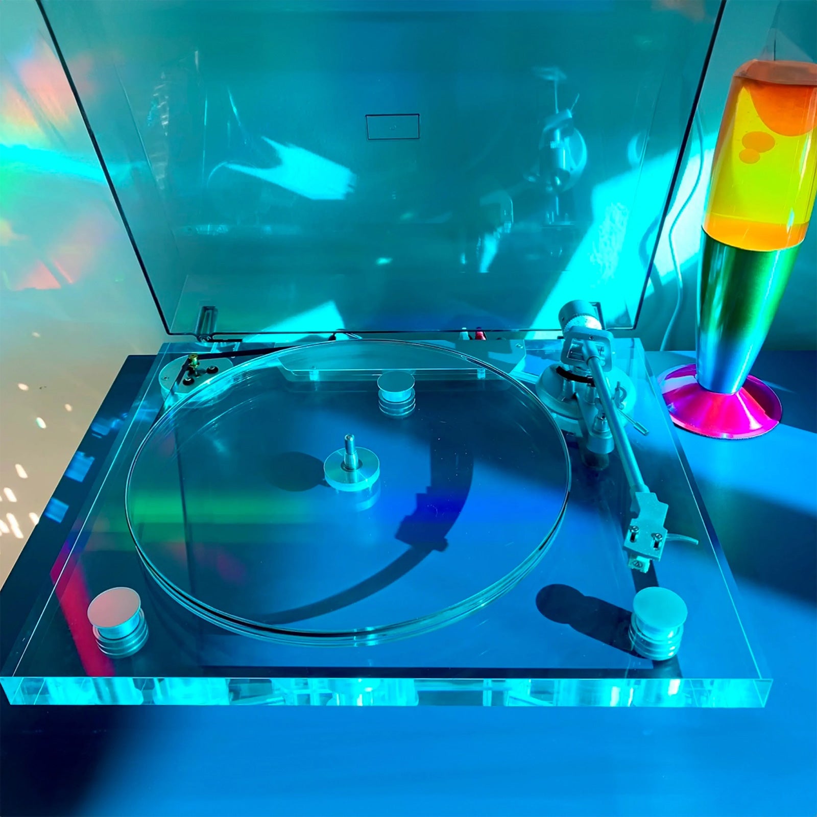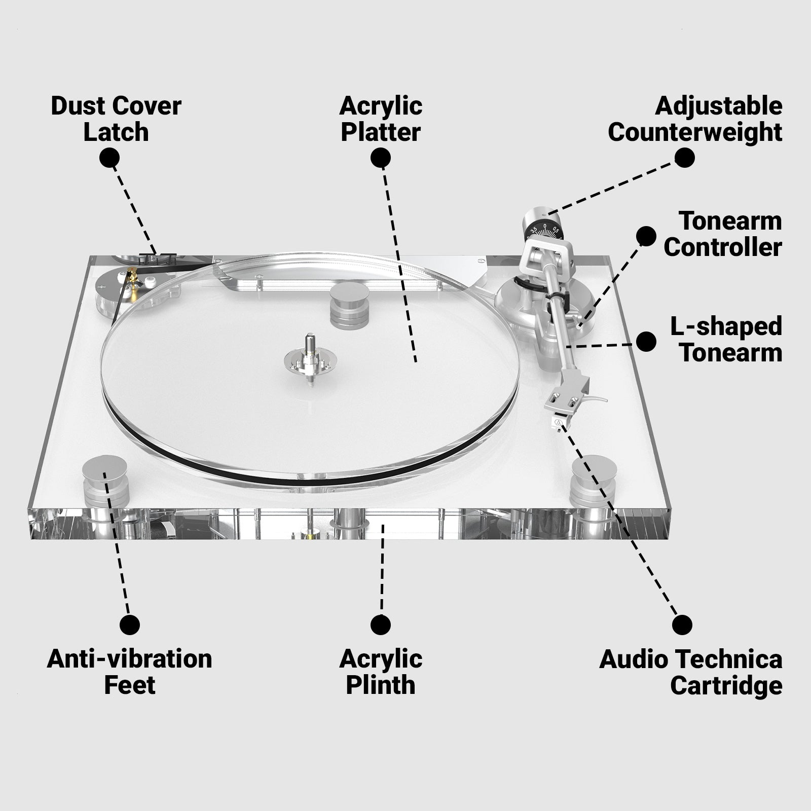 The ICE1 fully transparent acrylic high-fidelity Bluetooth vinyl turntable features a meticulously engineered playback system.