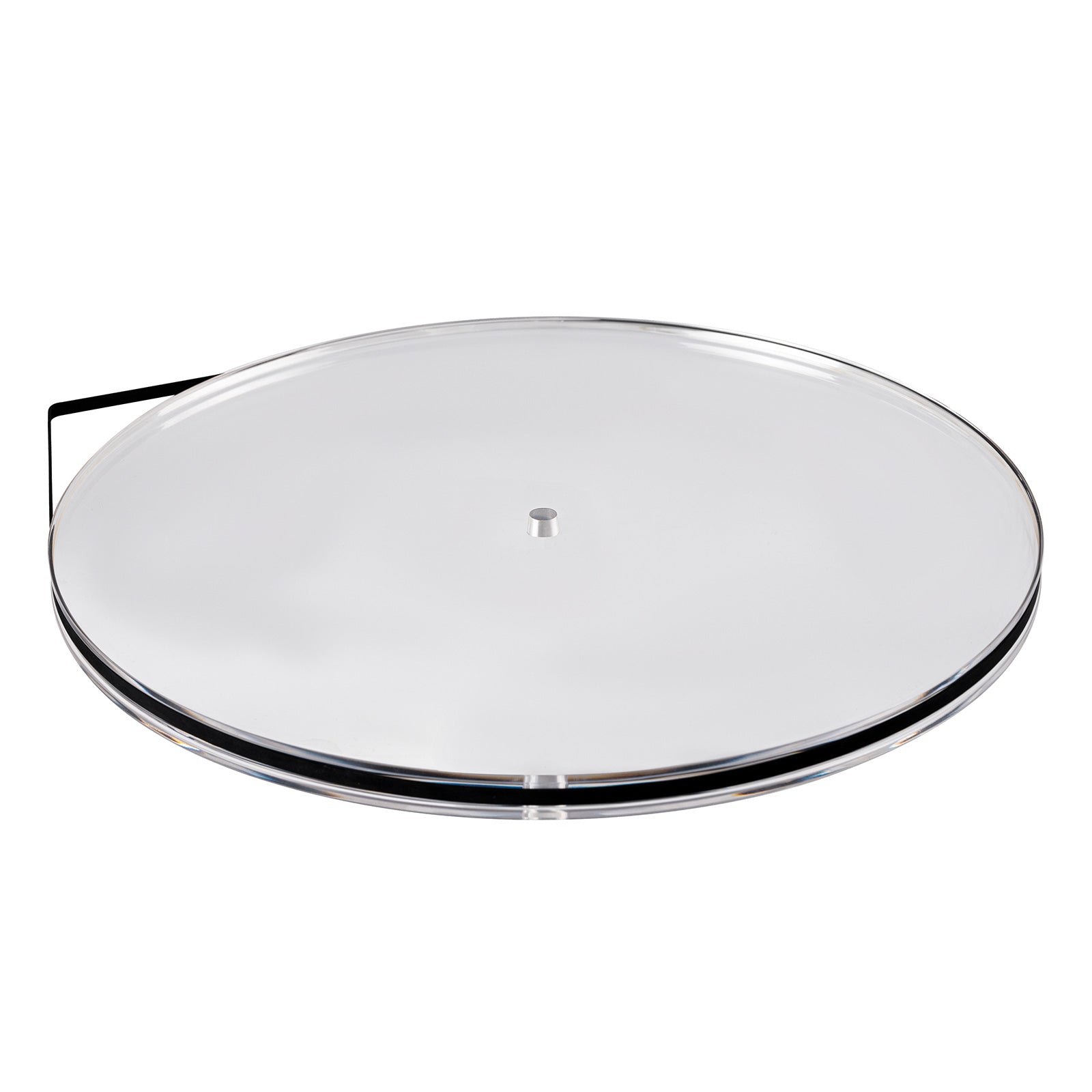 Carefully remove the acrylic platter from the packaging and place it flat on a clean, level surface. Install the belt securely around the platter.