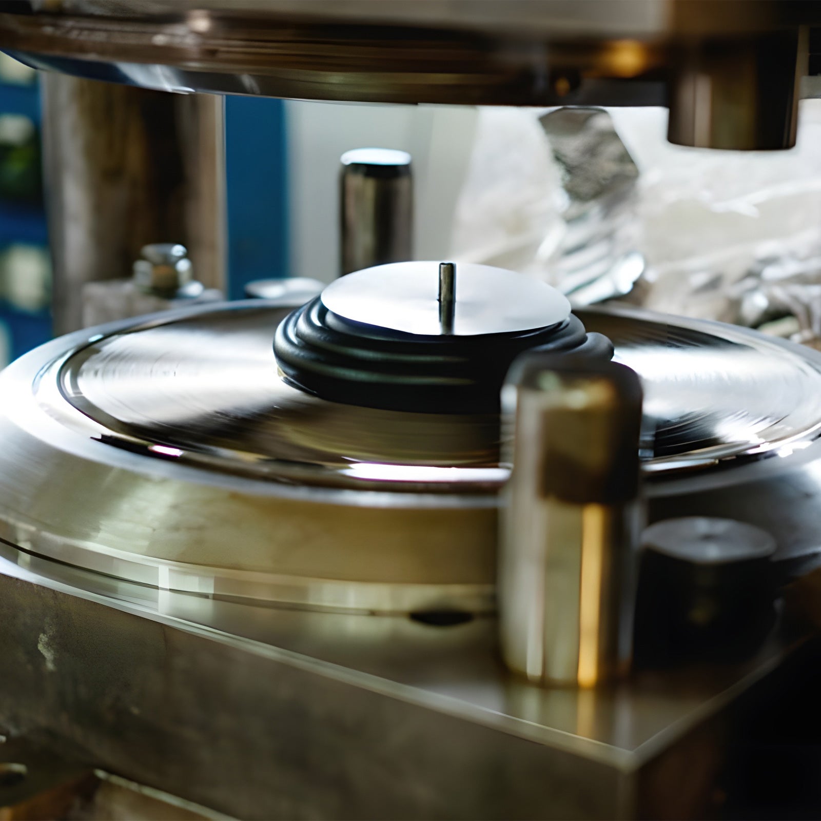 The grooved lacquer disk is plated with metal to create reverse grooves in an ultra-precise mold, called a "stamping die."