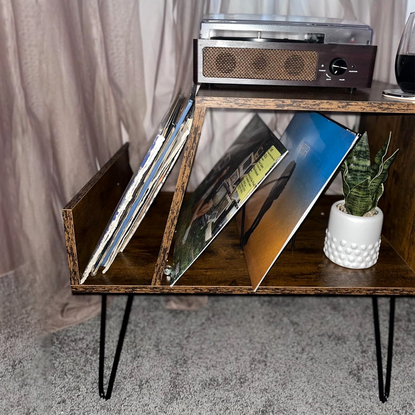 I absolutely love my new record player stand! It’s incredibly sturdy and looks so stylish in my living room. My vinyl collection has never been this organized. Highly recommend!