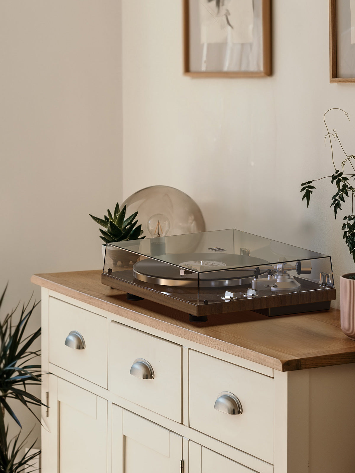 Carefully selected high-quality materials and accessories make this vinyl turntable stand out.