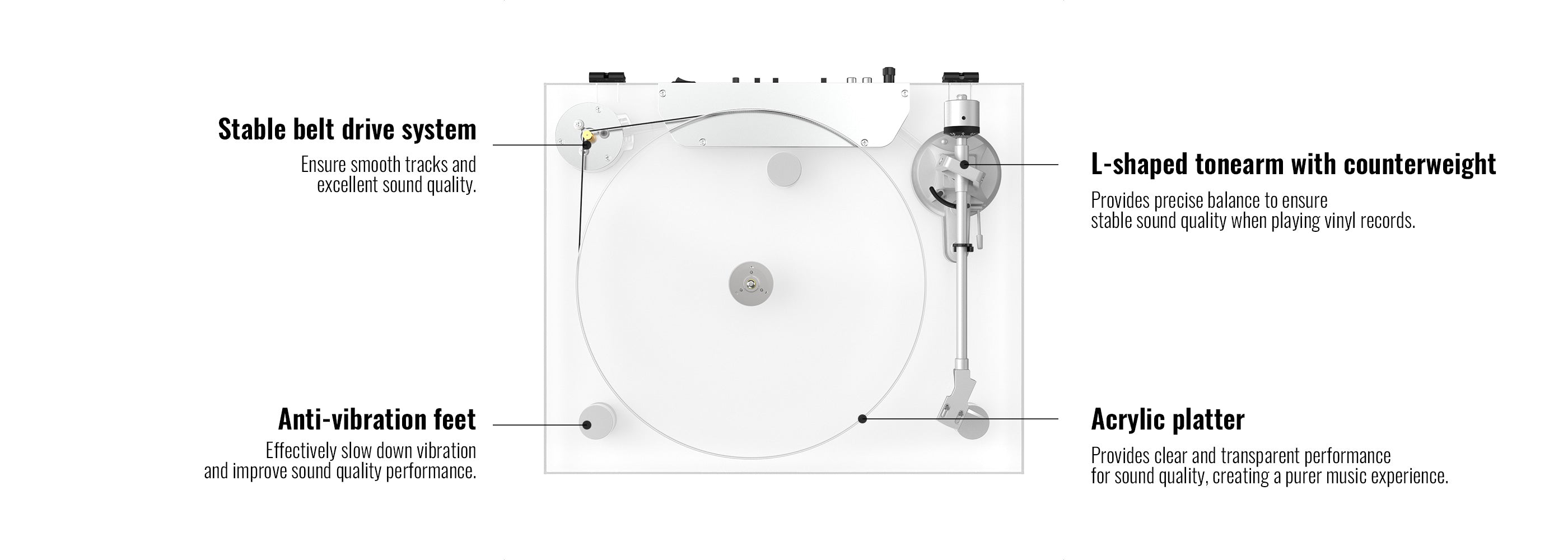Our turntables are crafted from carefully selected high-quality materials and accessories, setting them apart in both performance and durability.