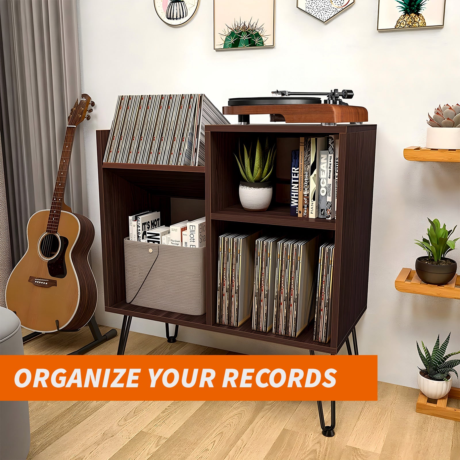 Keeping your vinyl collection and accessories organized has never been easier. Our stand features thoughtfully designed storage solutions, including shelves and compartments that can accommodate your records, turntable, and additional accessories. This organization not only makes it easy to find and access your favorite albums but also protects your records from damage, ensuring they remain in pristine condition.