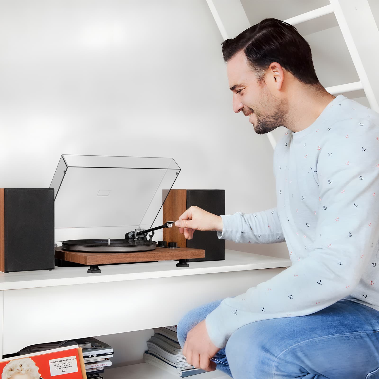 - Equipped with a magnetic cartridge that meticulously traces the grooves of your record, ensuring accurate and stable tracking for true HI-FI audio.