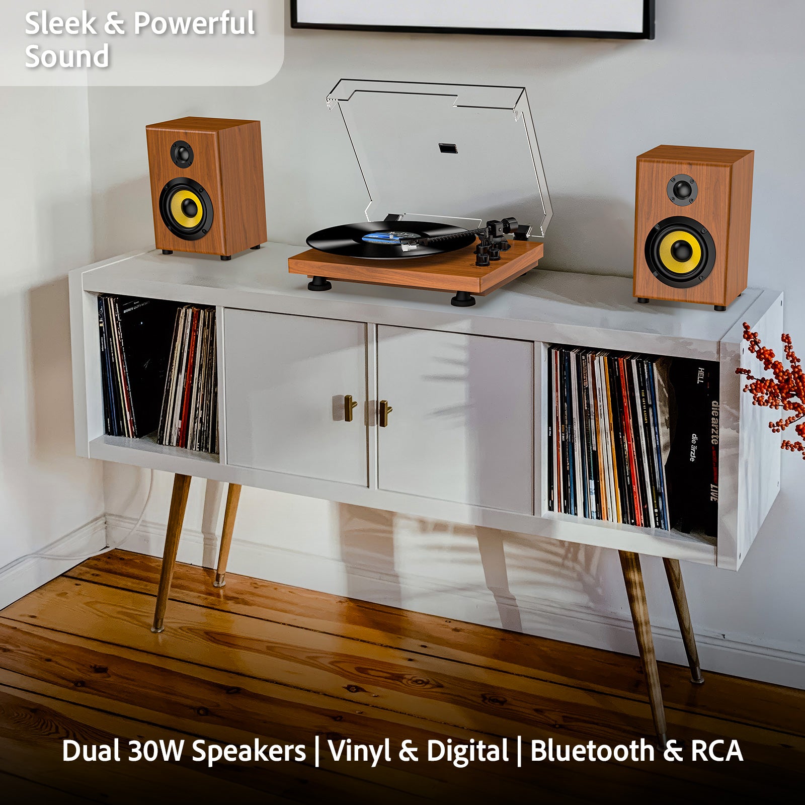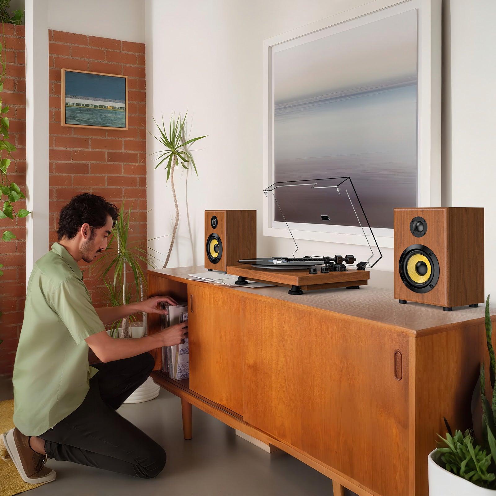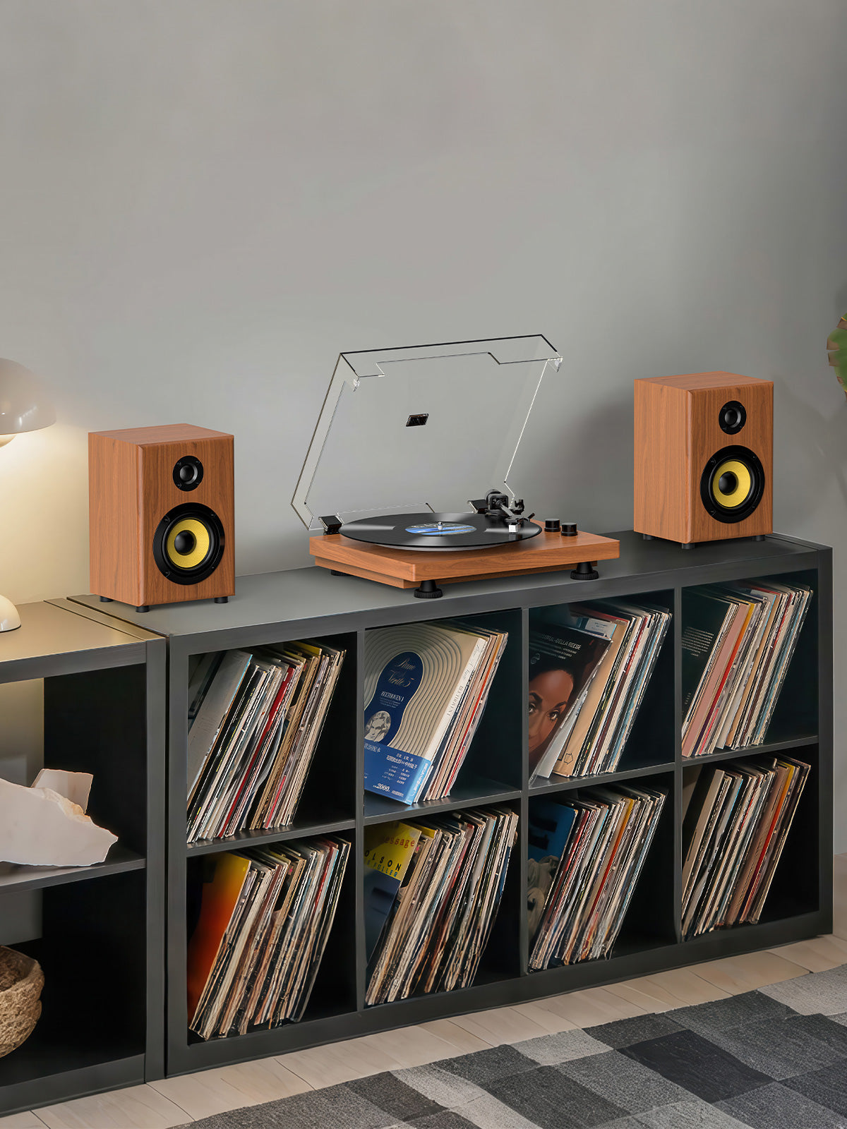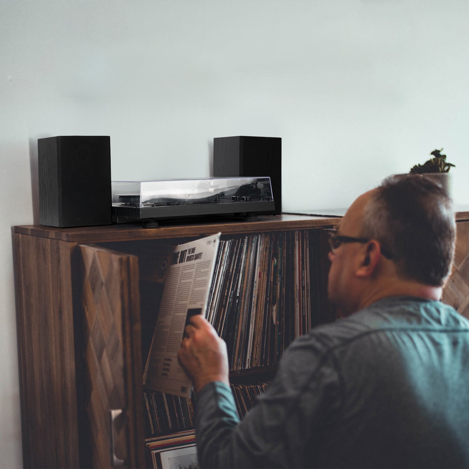 A ready-to-enjoy audiophile system. The tuned speakers and turntable deliver rich, balanced sound with no extra gear needed.