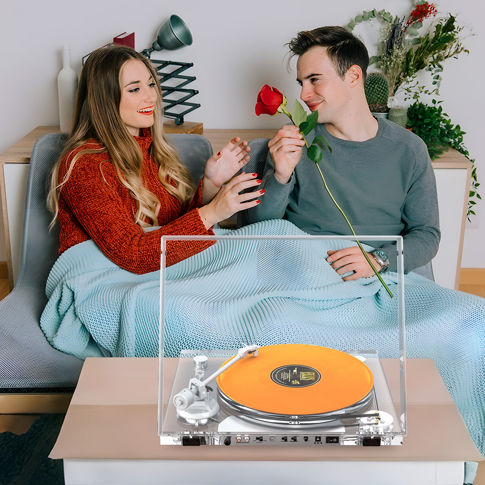 Our turntables feature Bluetooth connectivity, so you can easily connect to wireless speakers or modern sound systems — perfect for shared listening at home.