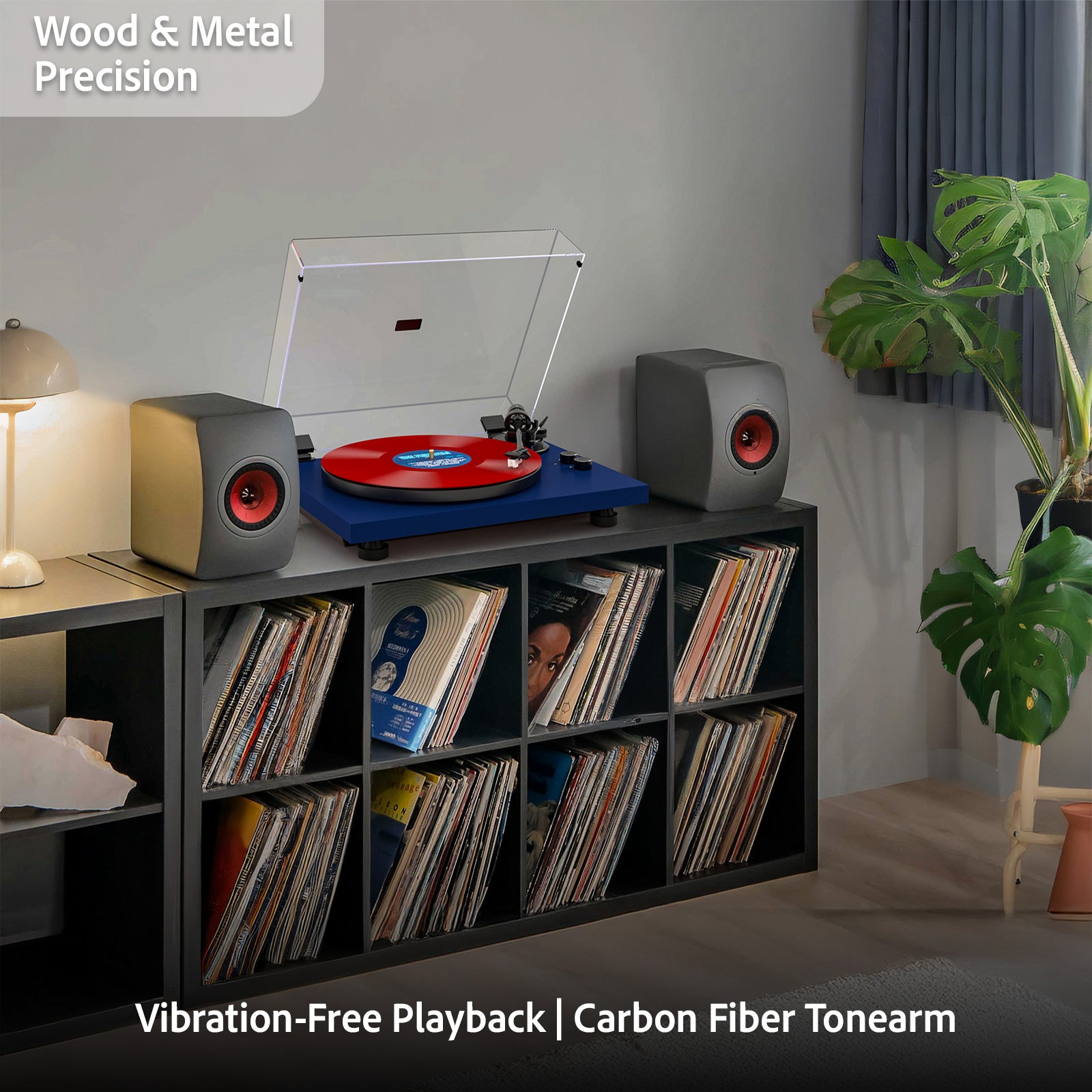 - Carbon fiber tonearm with anti-skate → precise, distortion-free playback.