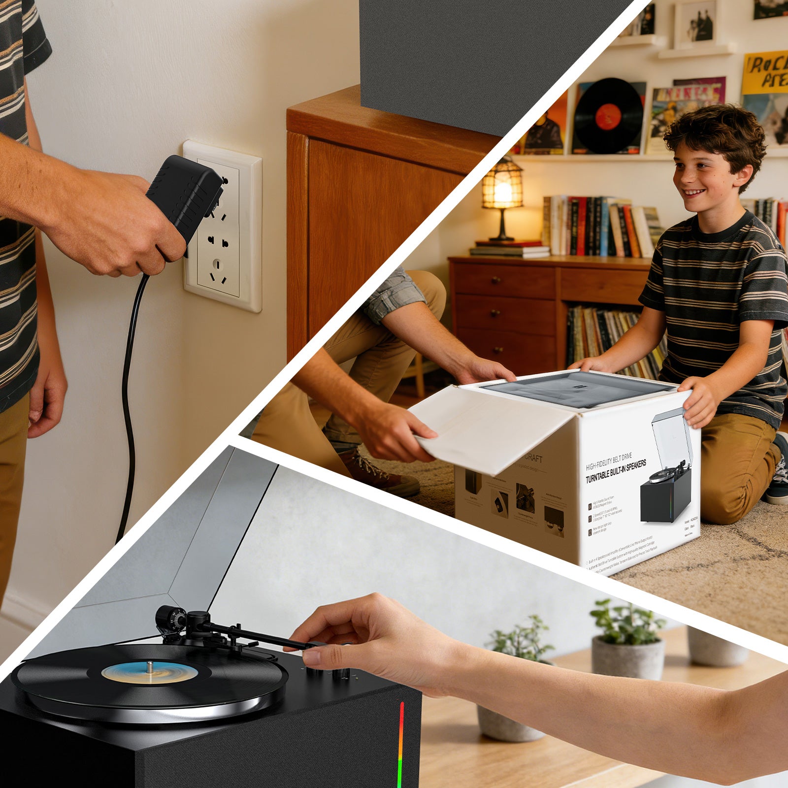 Pair your phone via Bluetooth, flip the switch, and start enjoying your vinyl collection. Quick, simple, and hassle-free—music has never been this easy.