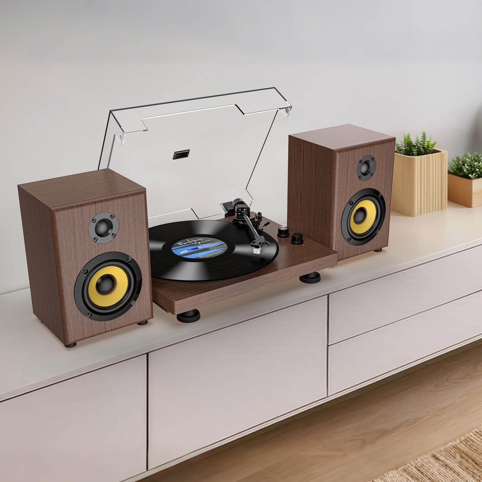 "I was blown away by the quality for the price. The speakers fill my living room with crisp, powerful sound. It’s the perfect combination of modern tech and classic vinyl."