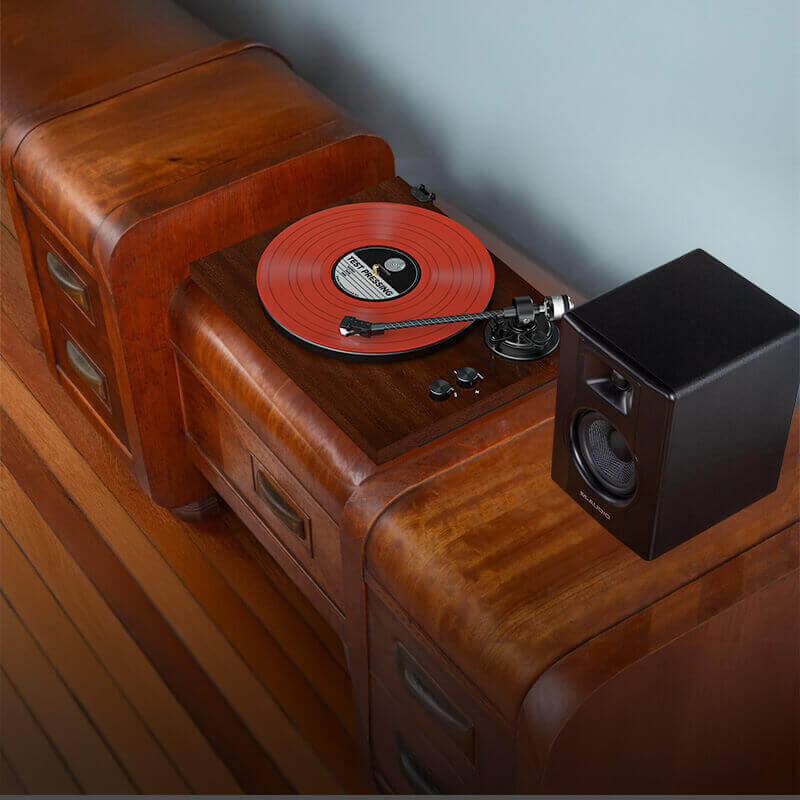 Anti-vibration feet isolate external vibrations, ensuring stability and maintaining pure sound during playback.