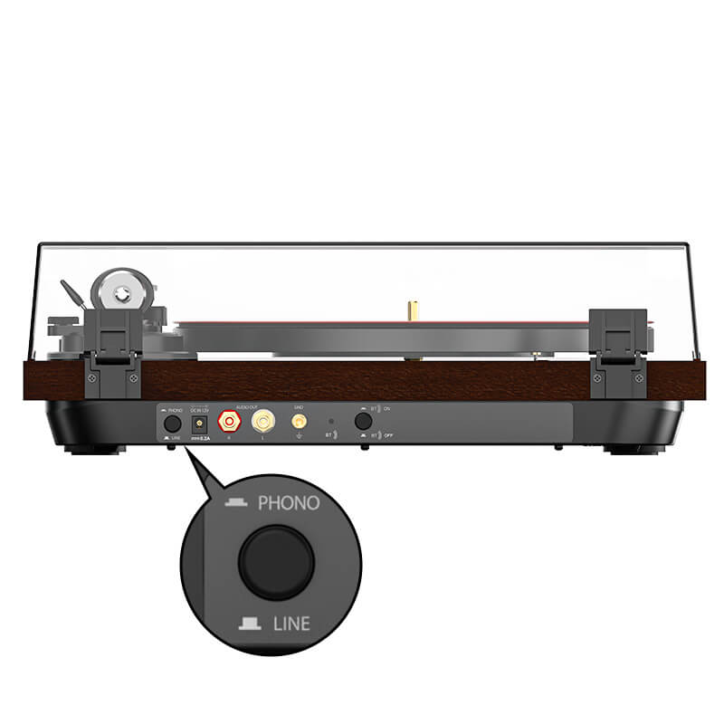 Provides stereo analog audio output via RCA jacks. - LINE/PHONO Switch