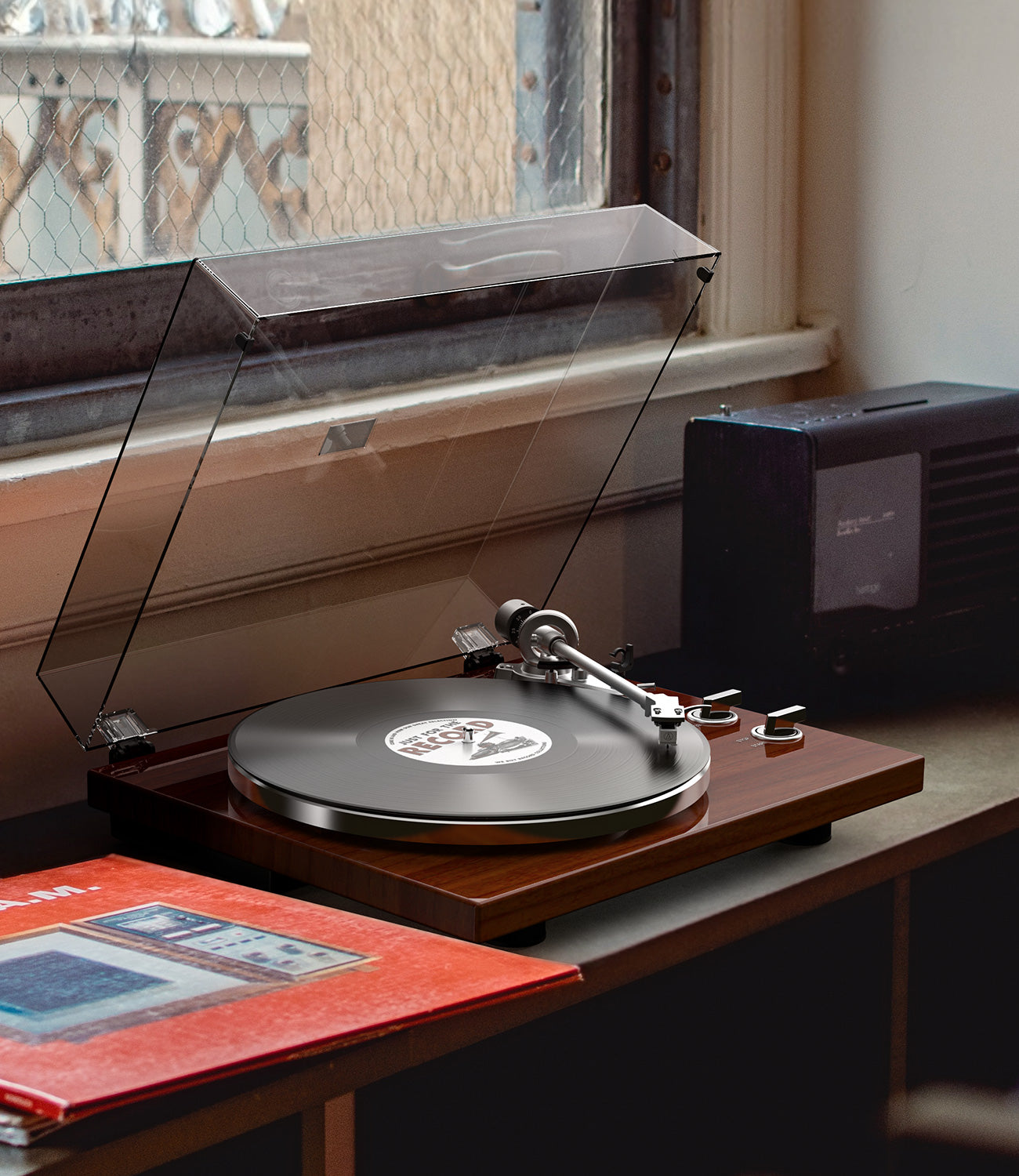 - 8.6-inch L-shaped aluminum tone arm is exquisitely designed to ensure precise contact between the stylus and the record, achieving the ultimate restoration of sound quality.