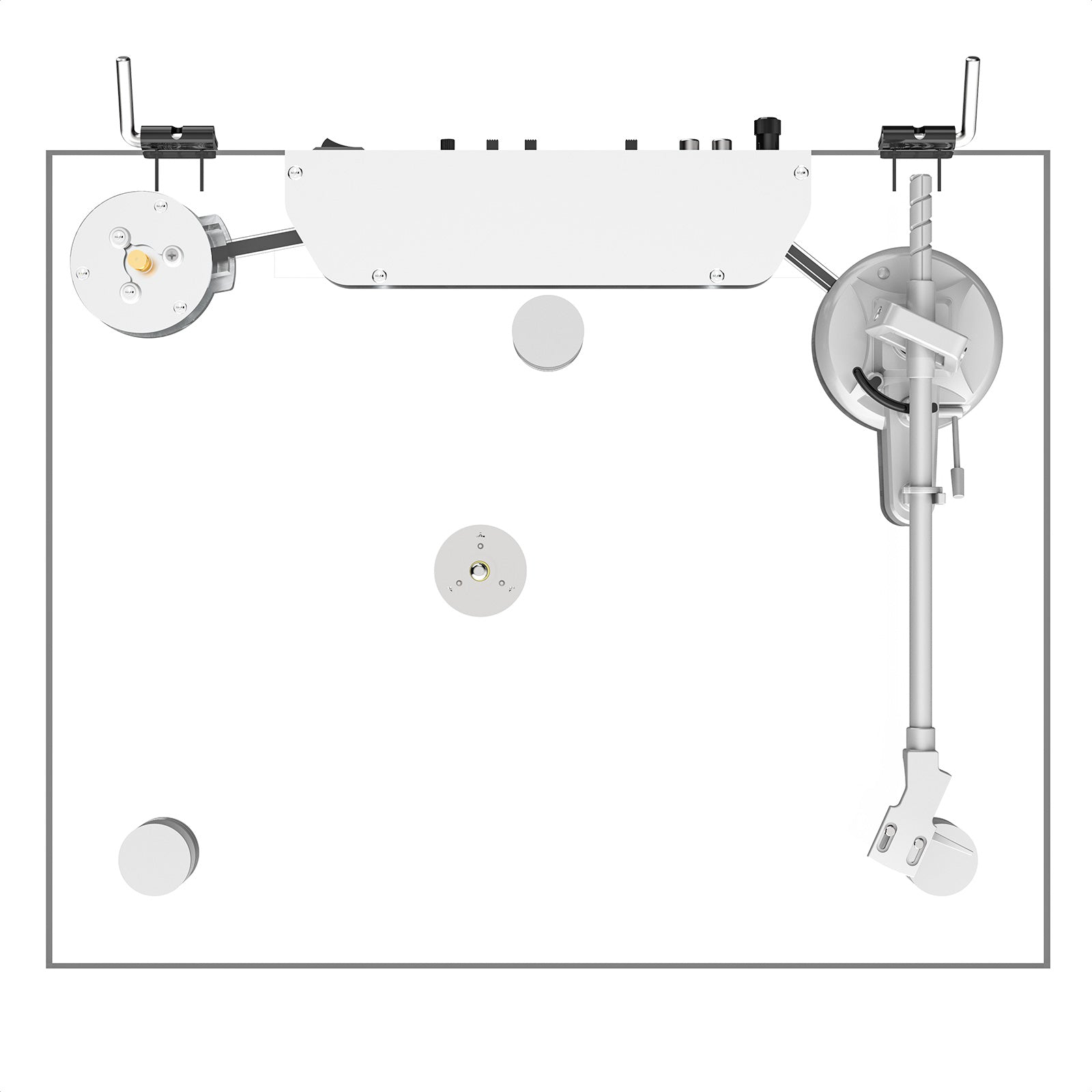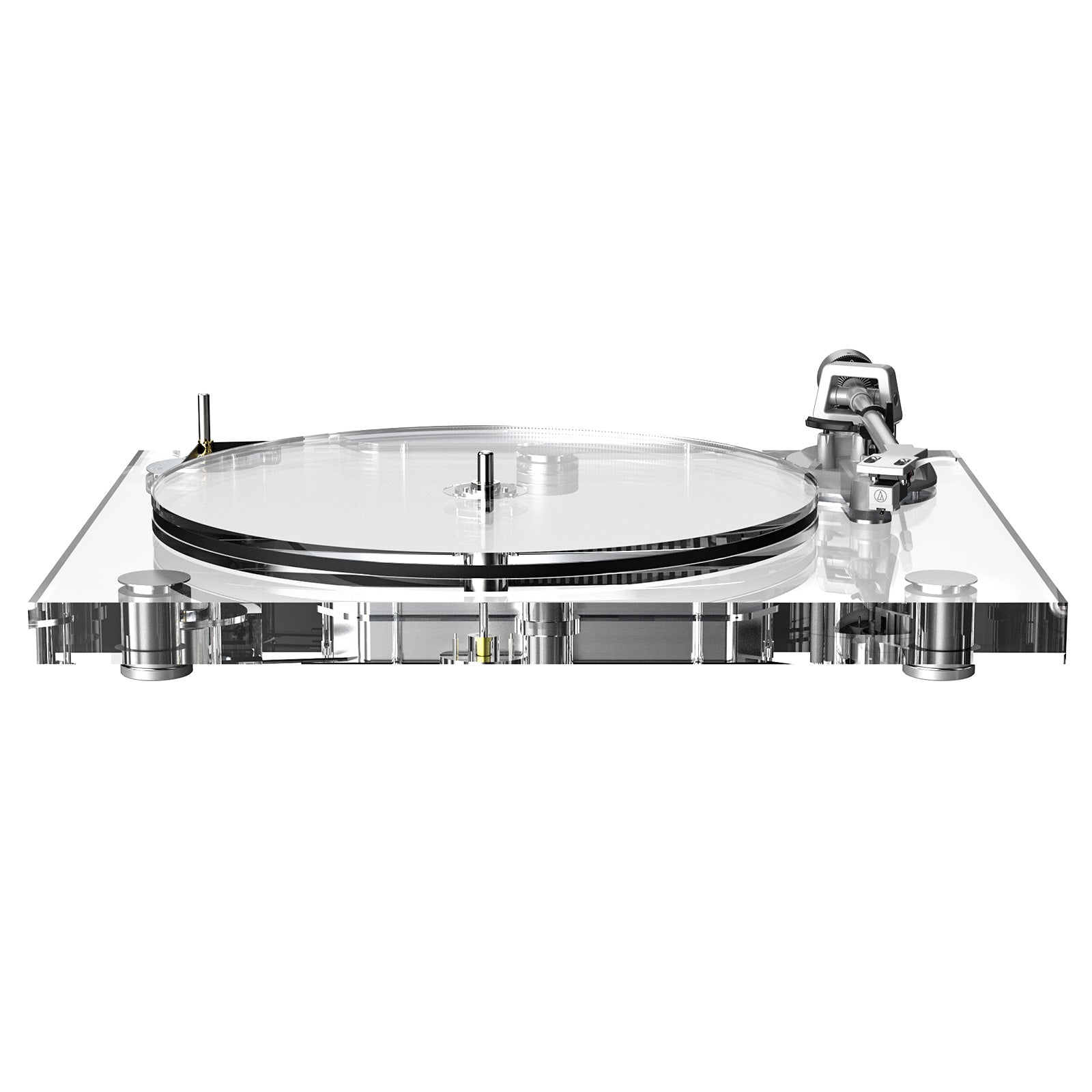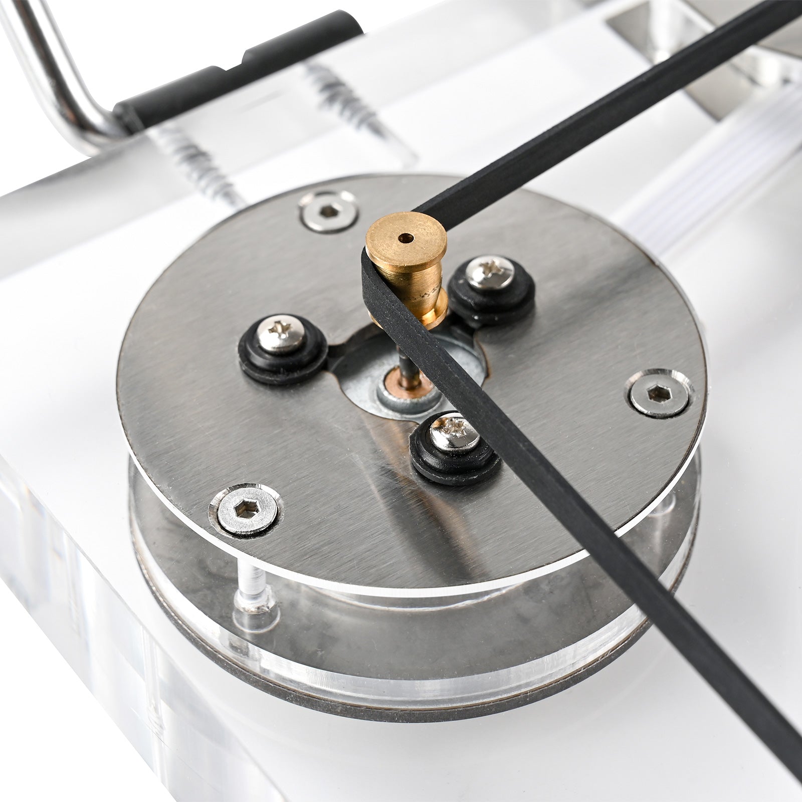 The solid, mass-loaded acrylic chassis effectively dampens unwanted resonance throughout the system, while the three adjustable isolation feet reduce surface contact, shielding the turntable from environmental vibrations. This design enhances low-frequency signal pickup and delivers superior audio clarity.