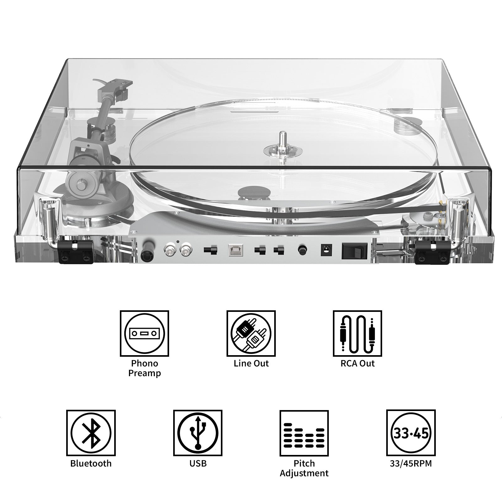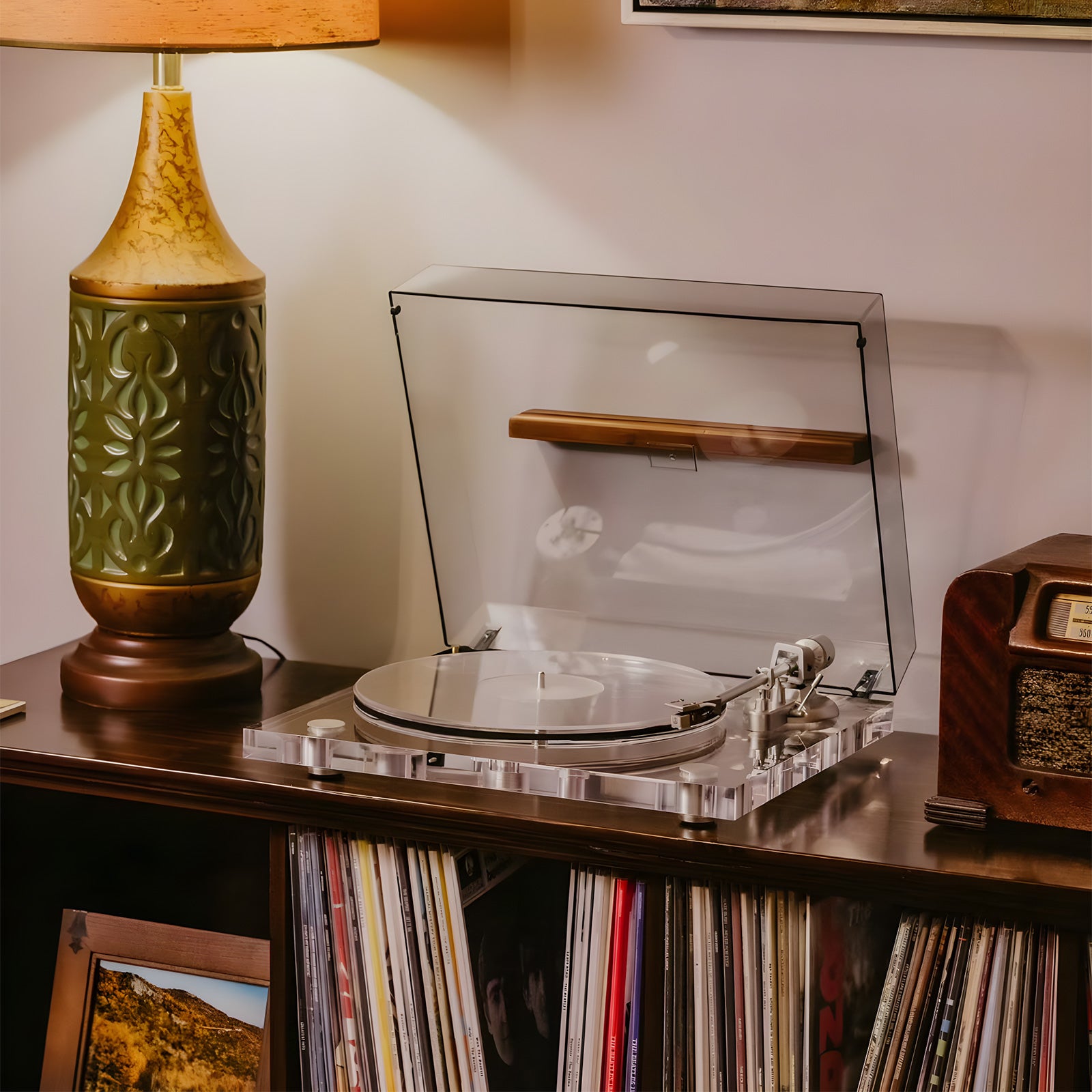 The highly transparent acrylic platter reduces noise and resonance, improving bass performance and mid-frequency clarity.