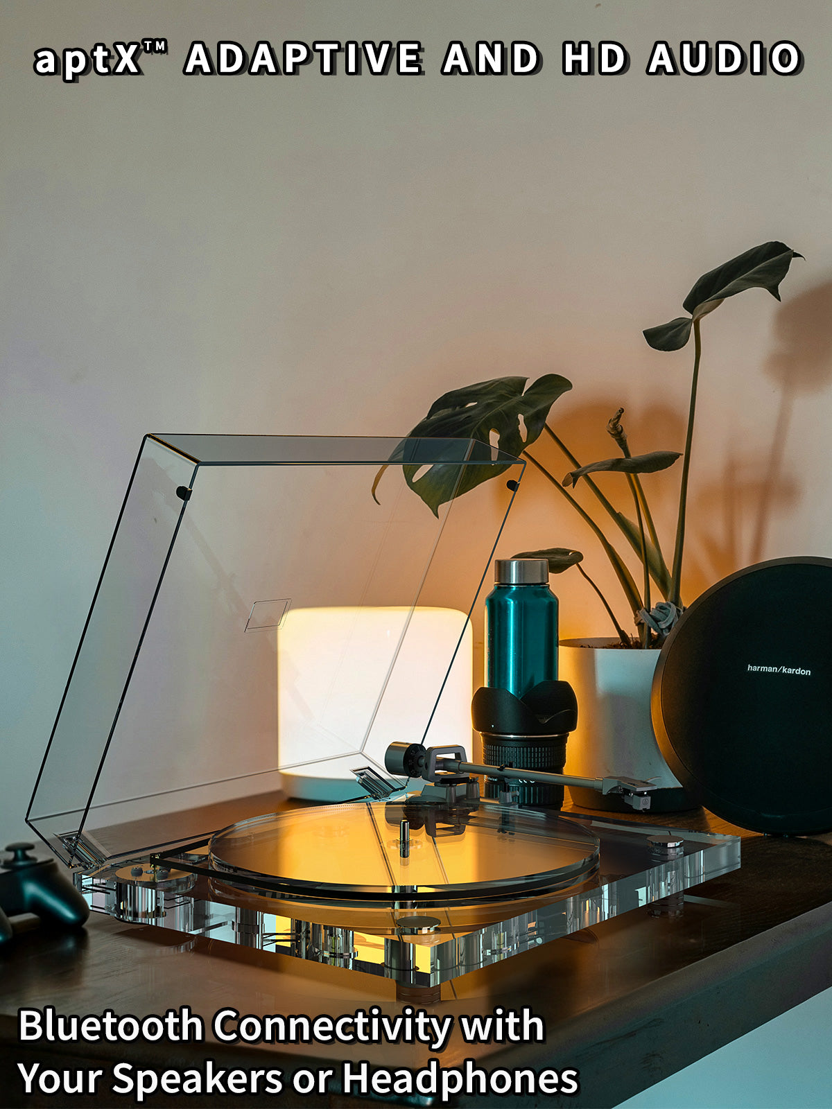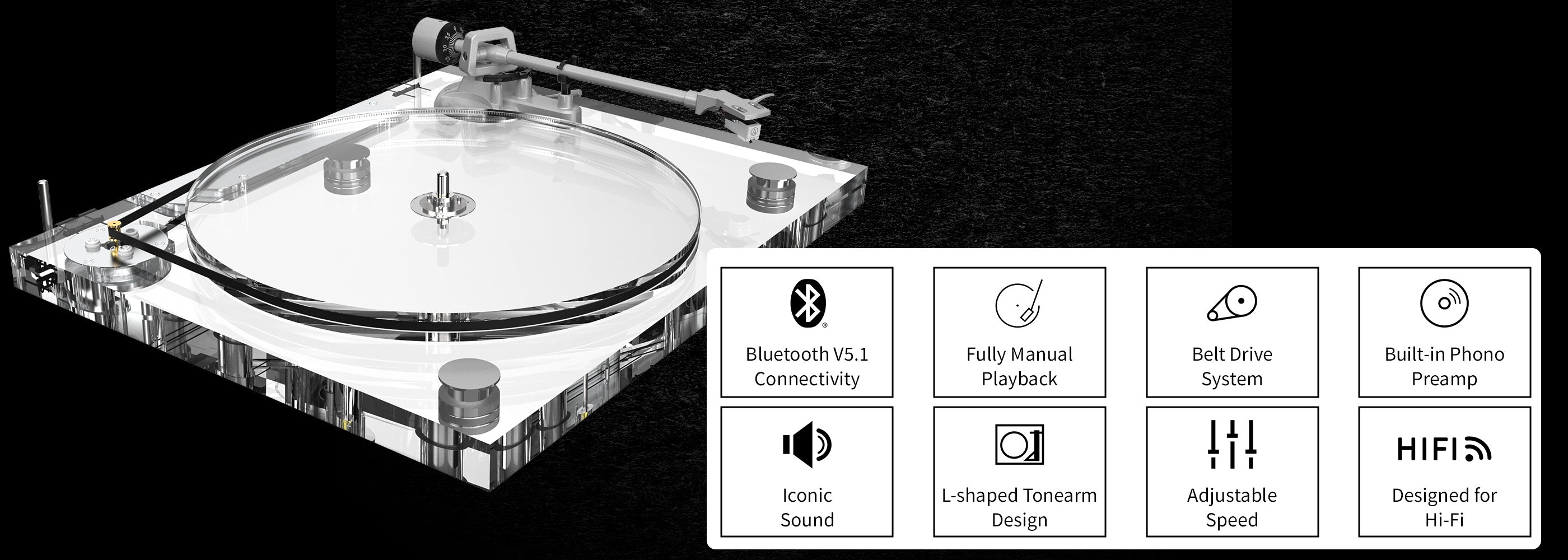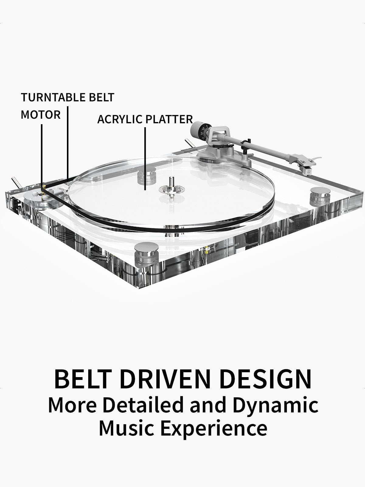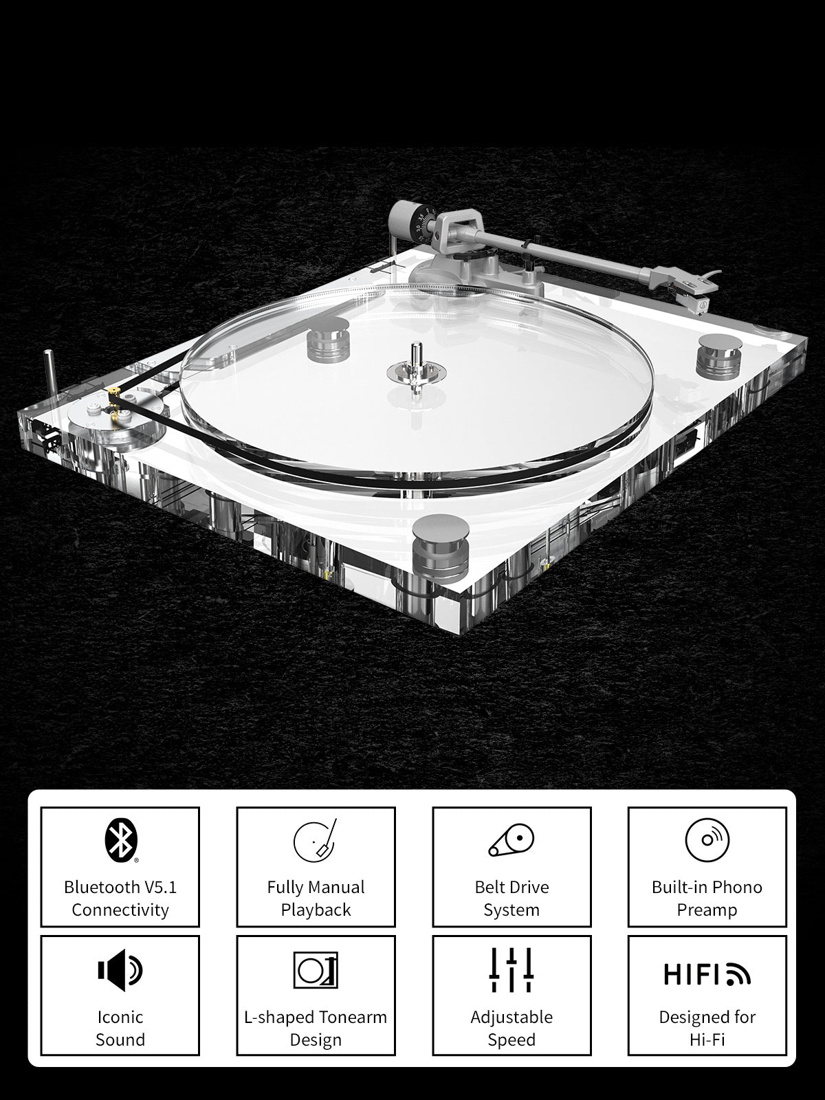 ICE1-V2 Transparent Belt Drive Bluetooth Turntable – Hi-Fi Acrylic Record Player