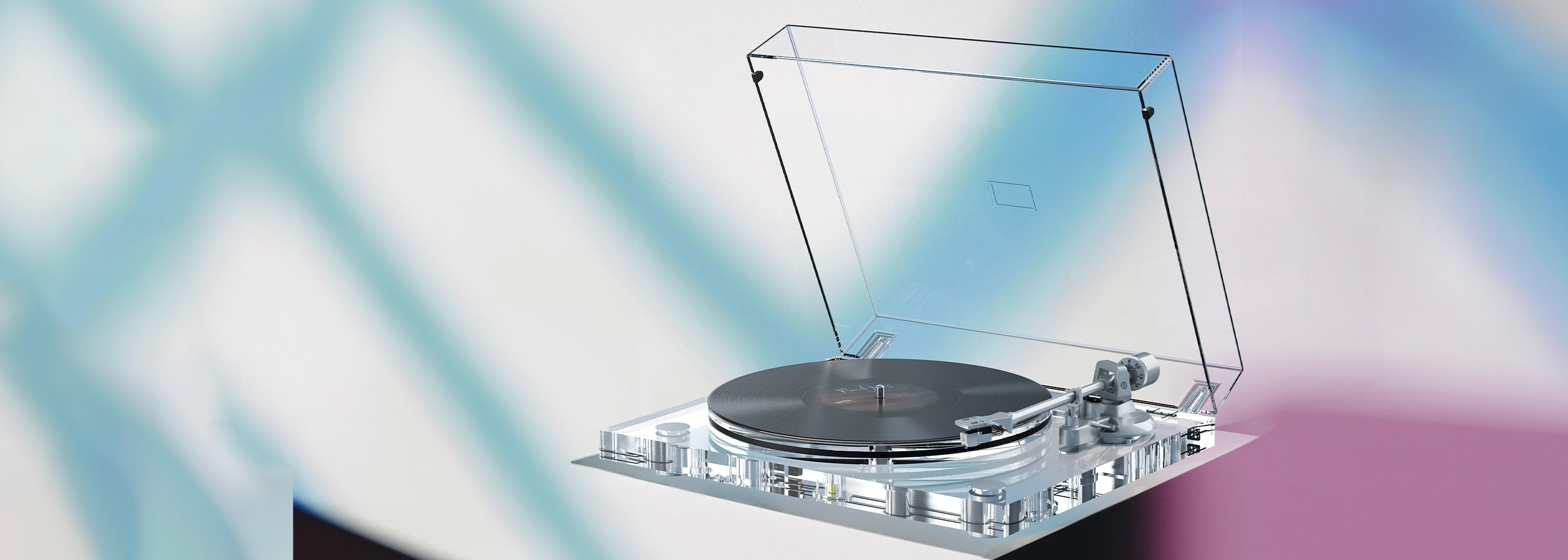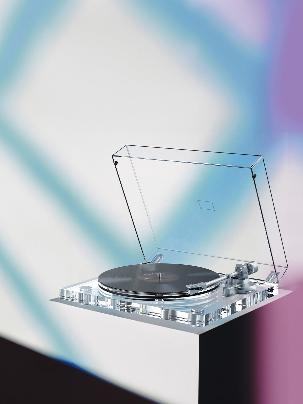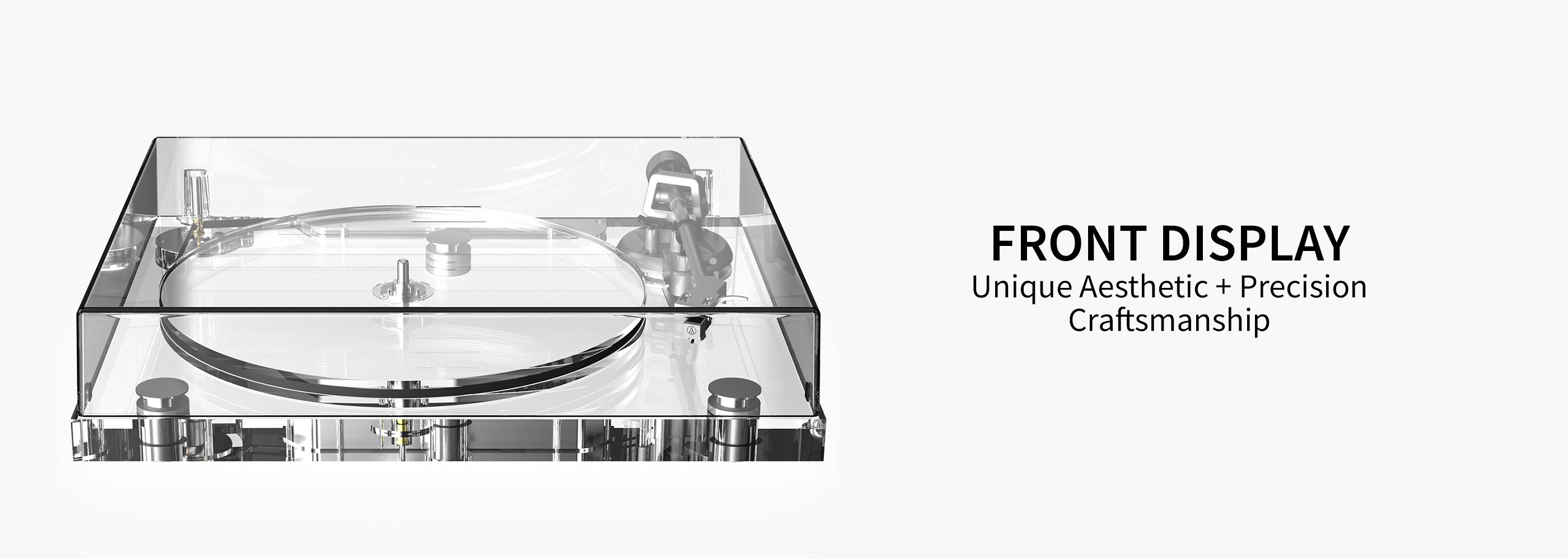 ICE1 is a revolutionary clear acrylic turntable that perfectly blends classic charm with modern style. Its minimalist design highlights modern elegance while maintaining timeless appeal. ICE1 uses a precision belt drive mechanism and advanced Bluetooth connectivity to provide clear sound quality, including balanced highs, rich midrange and deep bass, bringing you a true audio enjoyment.