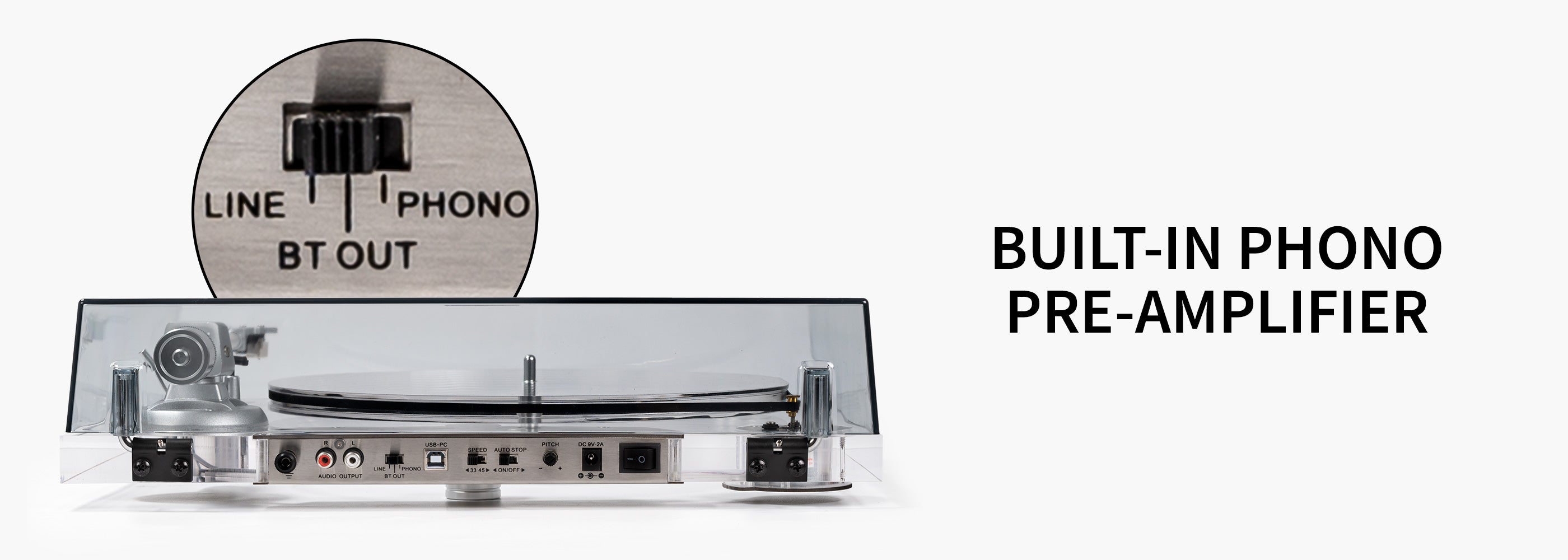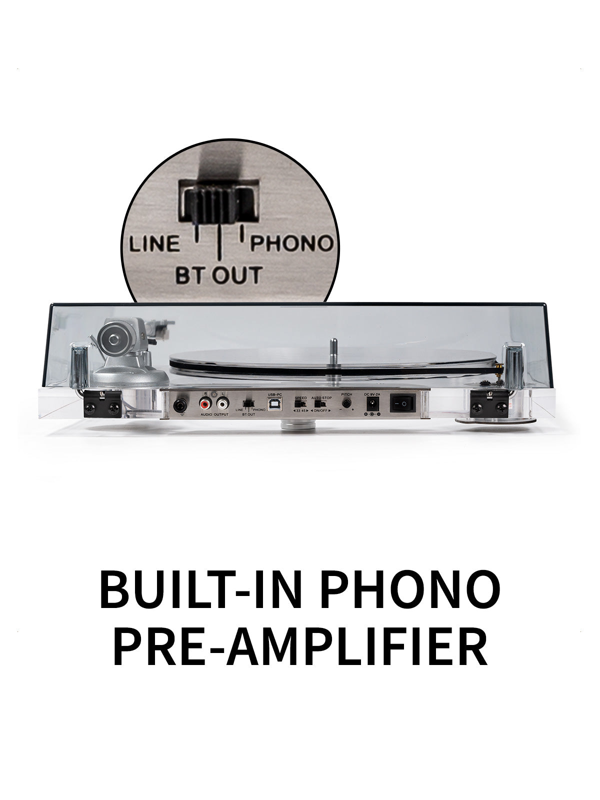 - Built-in Preamplifier: Equipped with Phono/Line switch, it is easy to connect to your home audio system for a high-quality audio experience.