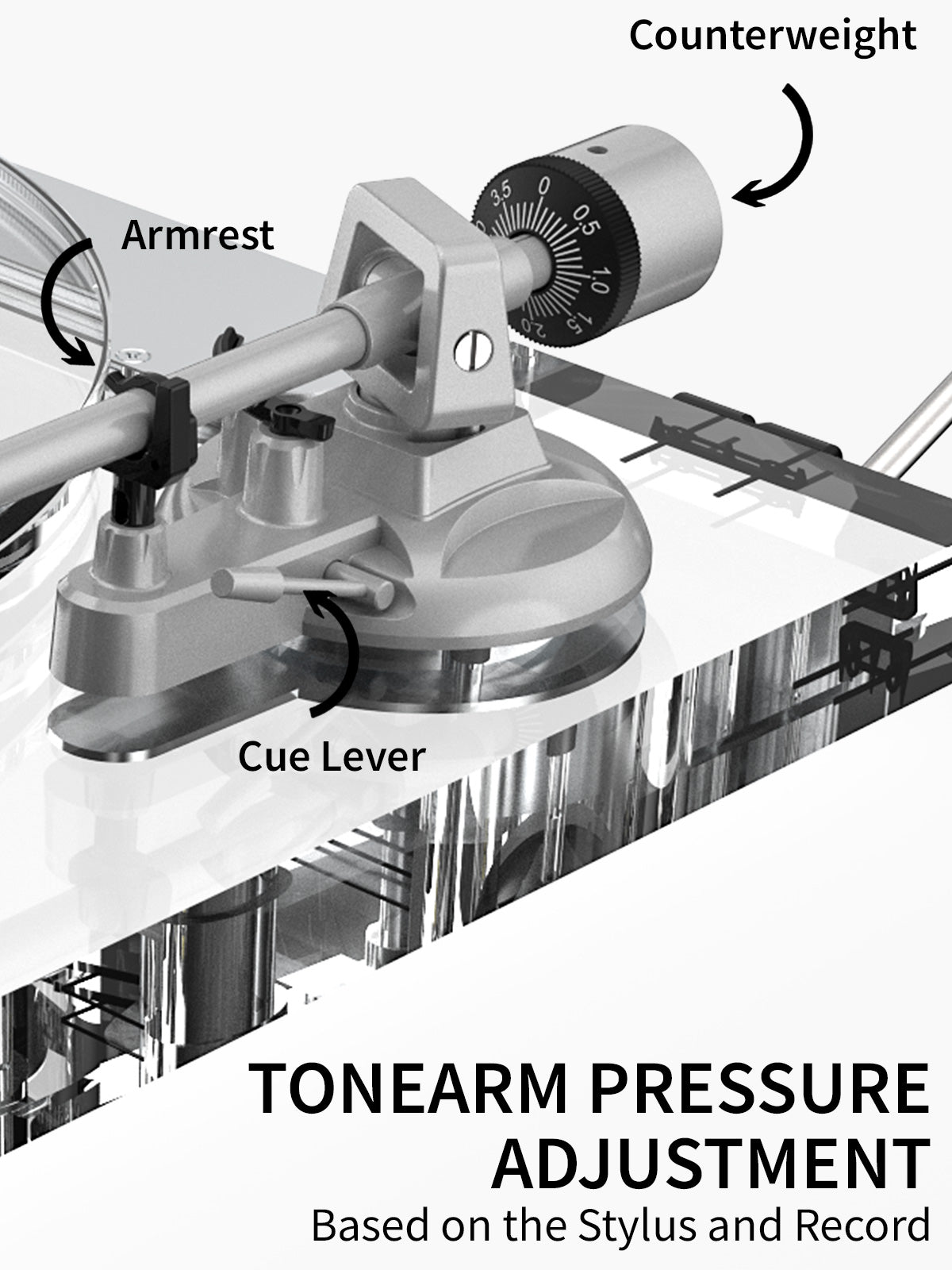 - Adjustable Tonearm Counterweight: Precisely adjust the needle pressure to ensure the best sound performance to adapt to different music styles.
