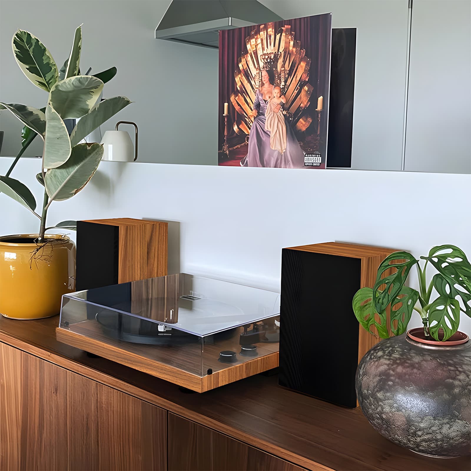 Let the SY101 transport you into the music. With 36W bookshelf speakers, feel the full impact of your records and create a captivating sound environment.