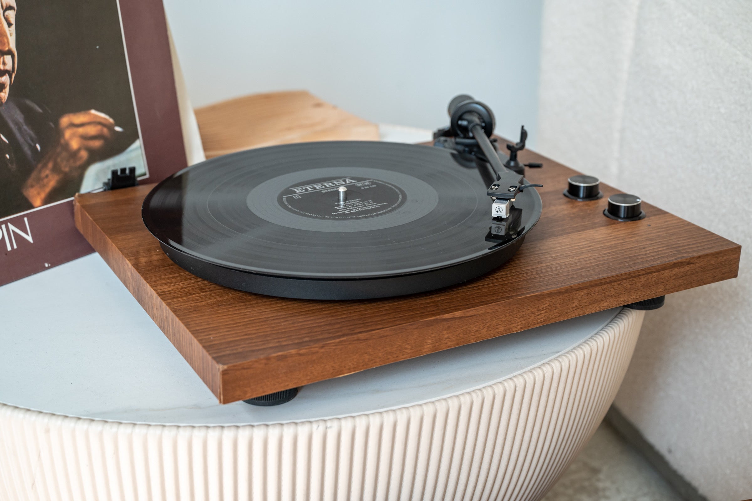Crafted with solid wood base, full-size 12in iron platter and isolation feet. The robust design and anti-resonant construction ensure stability during playback, reducing vibrations and enhancing overall sound performance.