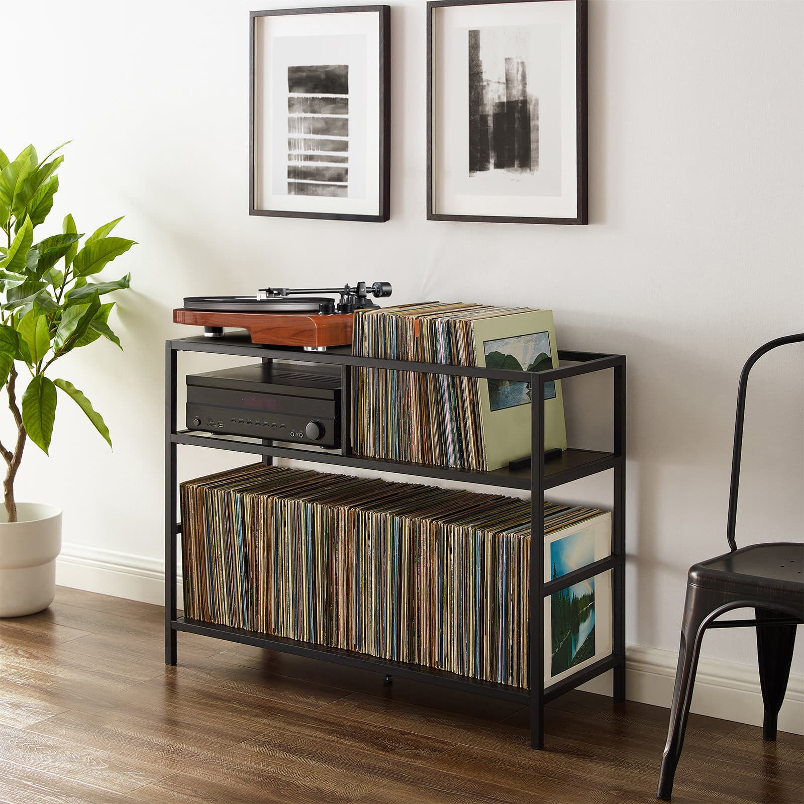- Sturdy solid wood plinth with vibration-absorbing feet for stability.